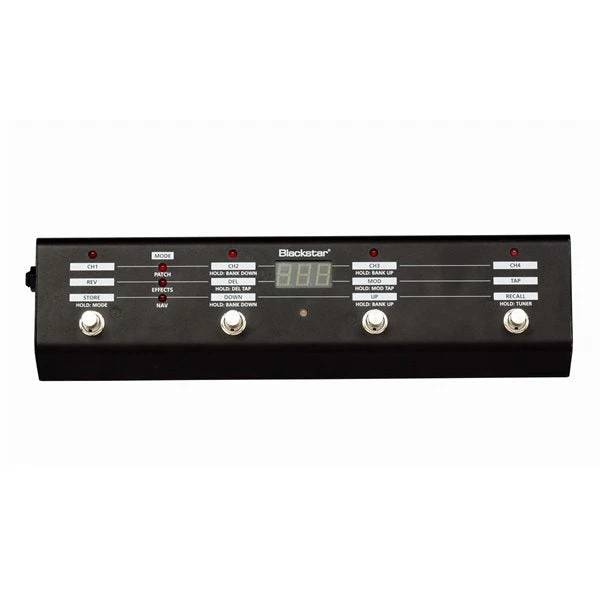 Patch Mode – This mode allows you to switch between the three banks of four patches accessible on the front panel of the amp (patches 1-12) in addition to patches 13-128, plus access to the tuner function and the ability to change to the other modes.Effects mode – This offers individual switching of the effects within a patch, operating more like traditional effects pedals. In this mode the fourth switch is used to control the tap time function. 8.