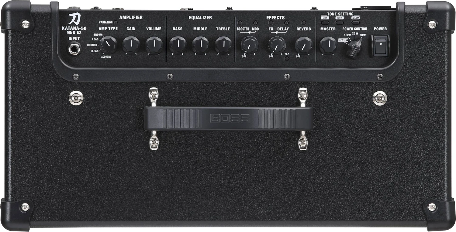 Katana MkII takes the acclaimed Katana guitar amp series to the next level, turbocharging the core platform with more sounds, more effects, and more features. Cover any style with five amp characters and five variations. Color your tones with a wide variety of customizable BOSS effects. And extend your range with the latest BOSS Tone Studio software, a power amp input for modelers and multi-FX, and many other enhancements.