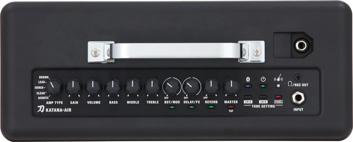 Though compact in size, Katana-Air is serious about sound quality. Equipped with pro amp tones and effects from the performance-class Katana amplifiers, this wireless wonder delivers premium guitar sounds for any style of music. To further extend the cable-free experience, you can wirelessly edit and organize sounds with a dedicated app and jam with songs streamed from your smartphone. With the innovative Katana-Air and your favorite guitar, casual playing has never been more convenient and inspiring.