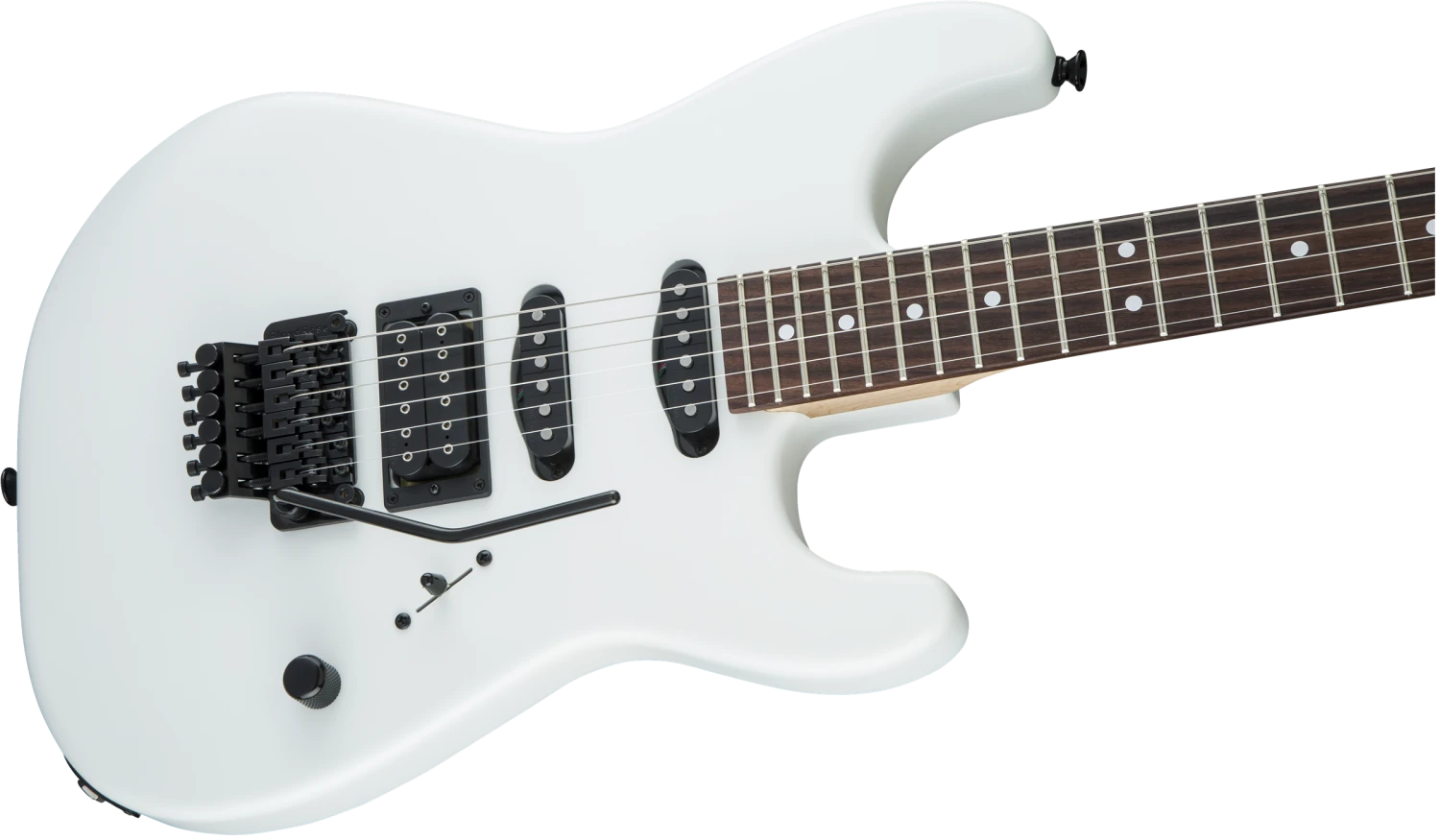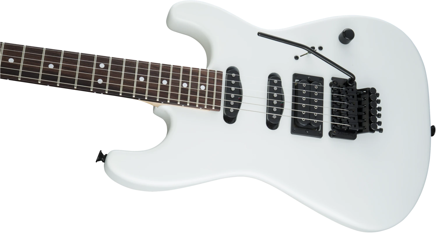 Charvel’s flagship USA Select Series taps straight into original-era Charvel DNA for sleek, ferocious models with “old-school throwback” specs our high-performance players have been clamoring for, such as ’80s-style body perimeters, finely shaped neck profiles, fast compound radius fingerboards with rolled edges, non-recessed Floyd Rose® bridges, and more.
