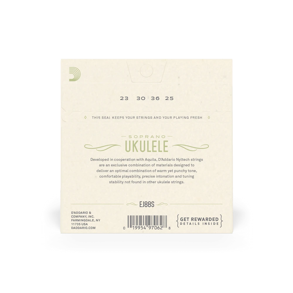 EJ88S is a string set for soprano ukulele, utilizing our Nyltech monofilament material. Nyltech strings utilize a proprietary formulation that produces the optimal combination of warm yet punchy tone, emulating the tonal characteristics of natural gut strings.