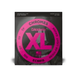 XL Chromes are among the warmest, mellowest bass strings we have to offer. These flat wound strings provide an ultra-smooth feel and a dark, yet warm tone, while allowing movement across the fretboard with no finger noise. Made with a high carbon steel core, Chromes stainless steel flattened ribbon wrap wire is expertly wound onto a series of interlocking under-windings, then precisely polished for unparalleled smoothness and a tonal presence which blends beautifully into the mix. This 45-100 Regular Light set is a short scale version of our best-selling bass gauge, known for its even tension, bright tone, and tight low-end.