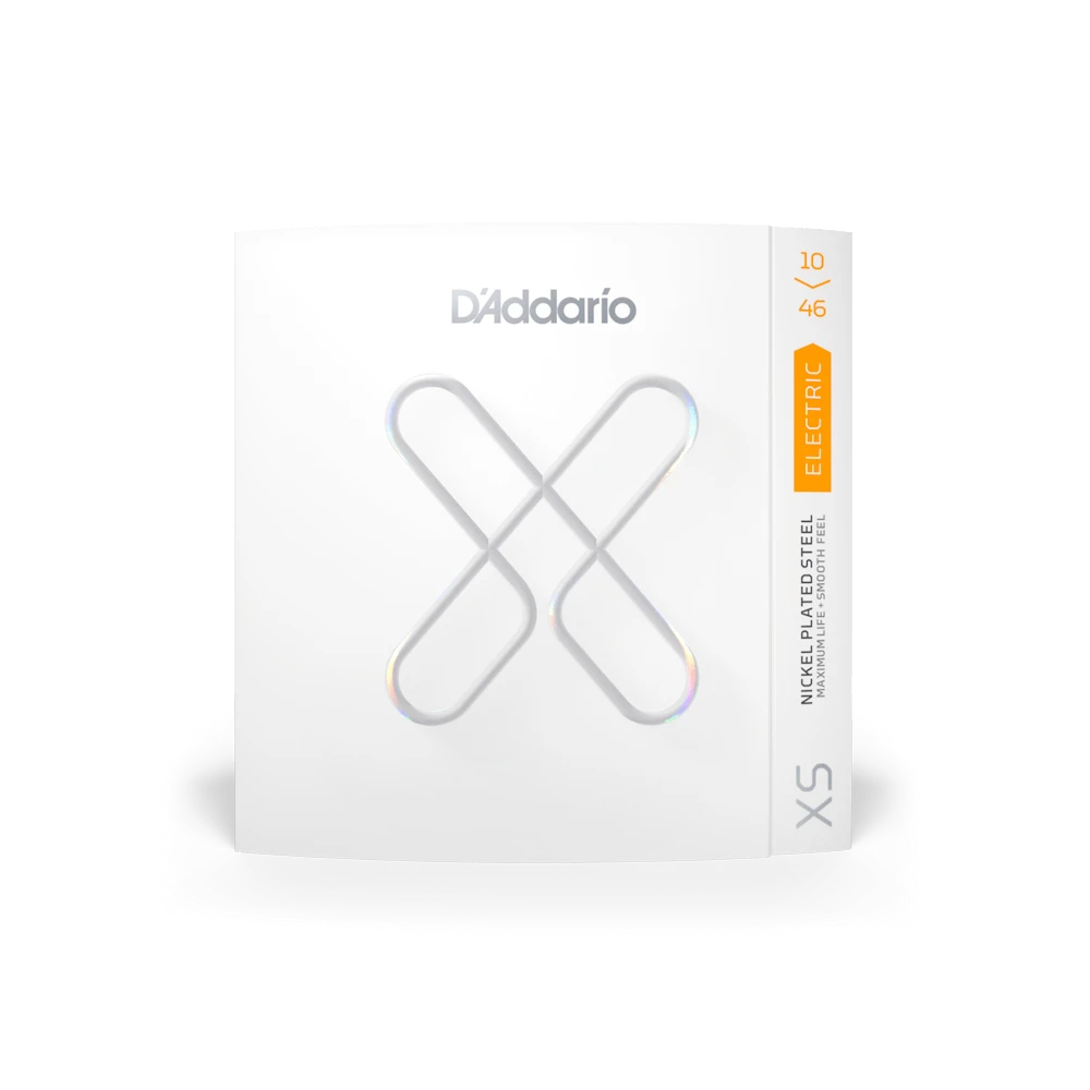 XS Nickel coated electric guitar strings provide the longest life of any D’Addario electric guitar string. Coated with our groundbreaking XS coating, these premium electric strings attain maximum life and a smooth, fast feel without dampening their outstanding tone. Constructed with a NY Steel core, reformulated nickel-plated steel wrap wire, and Fusion Twist technology, XS Nickel strings boast superior strength and tuning stability, plus richer harmonics, greater clarity, and remarkable definition with every sweep, slide, and bend. 10-46 Regular Light is our most popular electric gauge, providing a nice balance of tone and playability.