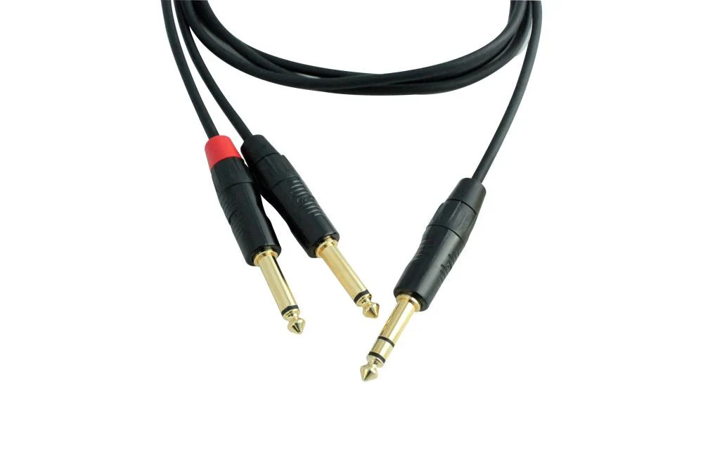 Performance Series insert cables are made to split stereo signals to two separate connectors for mixer inputs or recording devices. 1/8″ mini TRS to 2 × 1/4″ mono.