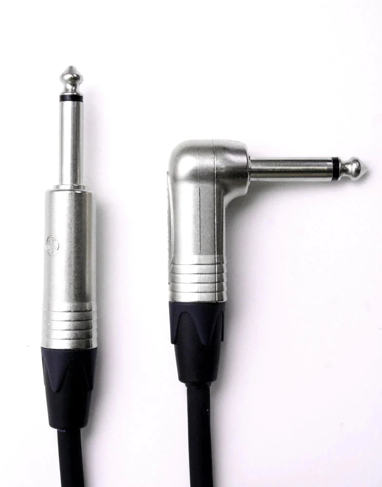 Professional Touring Series instrument cables have the perfect mix of proven high quality and ruggedness to withstand the rigors of professional touring. A 20-gauge centre core with 41 strands of pure copper ensure a clean signal with a wide frequency response. A double shield design blocks noise and eliminates handling noise that can plague cheap cables. Neutrik X Series slim connectors ensure a reliable connection every time. Neutrik NP2RX right angle 1/4″ phone plug for low-profile look and no snagging, with Digiflex NK1/6 cable.