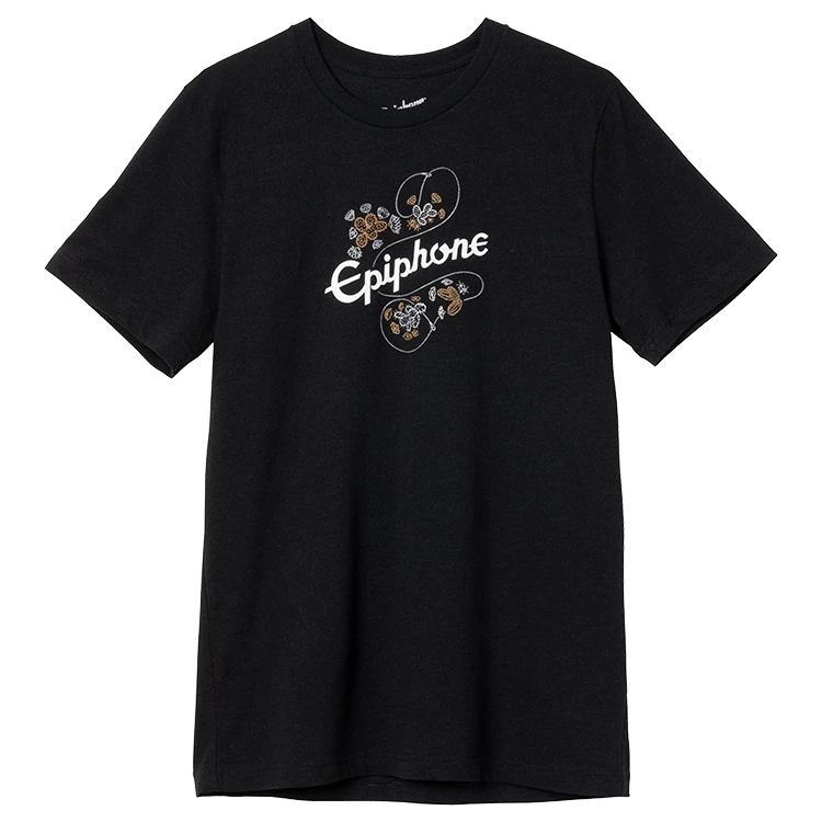 This black Epiphone Frontier tee features the vintage Epiphone logo and the iconic Frontier “rope and cactus” pickguard graphic. This will be one of your favorite tee shirts.