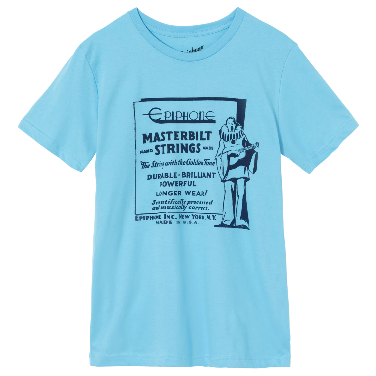 This comfortable Epiphone tee features artwork from Epiphone’s Masterbilt Electar guitar string packaging dating back to the 1930s.