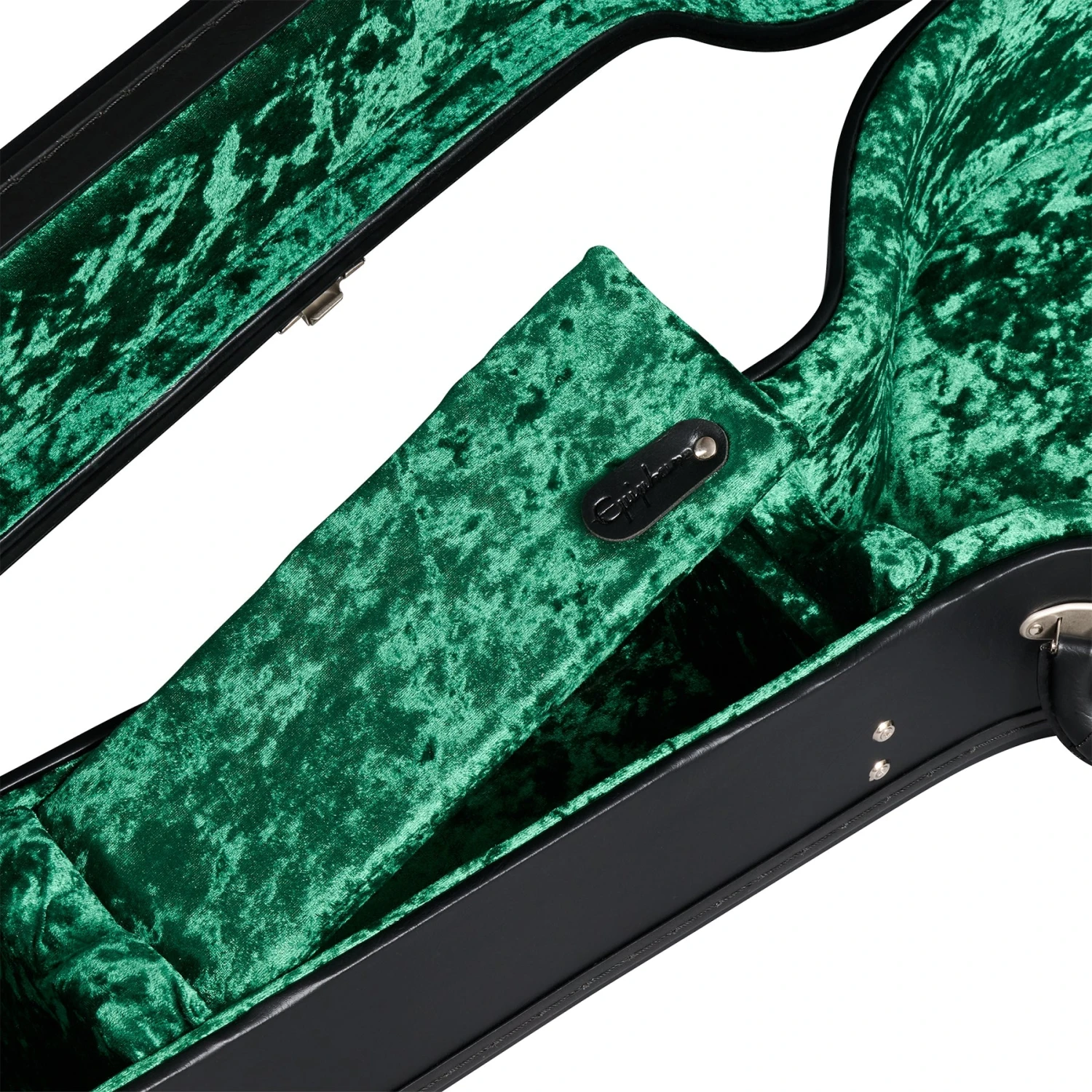 Earl Scruggs is arguably the most influential banjo player in history. He popularized the three-finger banjo picking style, now called “Scruggs style,” which is a defining characteristic of bluegrass music and was highly influential on multiple genres. The Epiphone Earl Scruggs Golden Deluxe is inspired by Earl’s longtime musical companion – a rare Gibson RB-Granada Mastertone five-string that was his primary banjo from 1949, when he acquired it, up until his passing in 2012. The Epiphone Earl Scruggs Golden Deluxe Banjo features a 3-ply maple resonator with figured maple veneer, 3-ply maple rim, and gold hardware, including a gold plated armrest with Earl Scruggs-inspired engraving. The 26.4″ scale-figured maple neck has an ebony fretboard with 22 medium/tall frets and is adorned with the famous “Hearts and Flowers” and a Mastertone Block inlaid in mother-of-pearl. A hardshell case is also included.