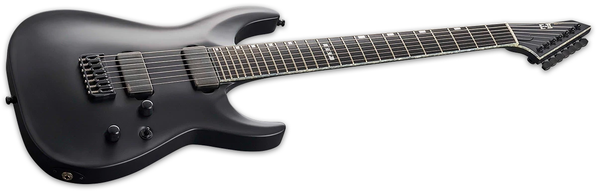 Created at the ESP facility in Tokyo, Japan, the ESP E-II Series is our highest-quality factory-produced instrument collection. With the E-II Horizon NT-7B Hipshot, you might have found your dream guitar, as long as you’re able to take advantage of its many world-class features. Let’s start at the beginning: it’s a 7-string baritone guitar built at 27″ scale. Downtuning to extreme levels will never be a problem with this professional-caliber instrument. It offers neck-thru-body construction, with all of the benefits of sustain and stability you’d expect. Adding to this is the Hipshot hardtail bridge with string-thru-body design. The guitar’s active pickup set includes the EMG 85-7H (neck) and 81-7H (bridge) for a range of terrific tones from dark and moody to screamingly aggressive for your most brutal rhythms, riffs, and solos. Top-tier components on the E-II Horizon NT-7B Hipshot include ESP strap locks, Gotoh locking tuners, stainless steel frets, and a bone nut.