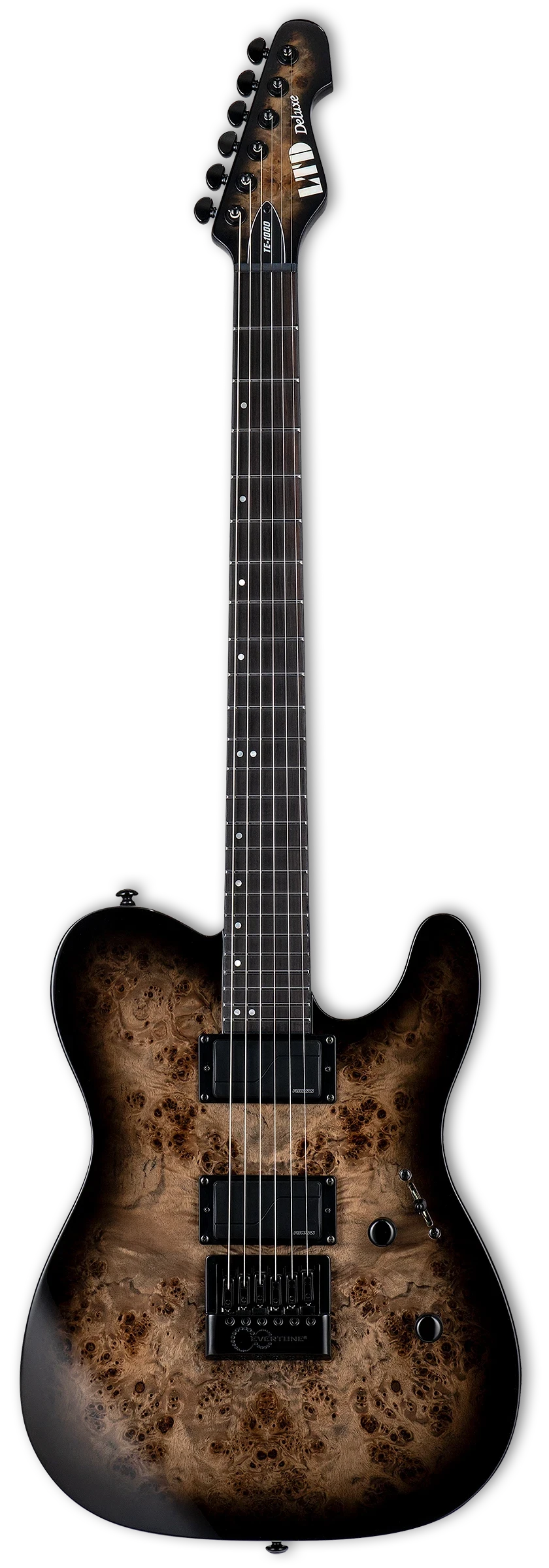 Guitars in the LTD 1000 Series are designed to offer the tone, feel, looks and quality that working professional musicians require in an instrument. The TE-1000 EverTune BP includes the powerful and innovative EverTune constant tension bridge, ensuring that under almost any conditions, your guitar will stay in perfect tune, and have accurate intonation at every point on the fingerboard. This guitar features a mahogany body with a striking burled poplar top, paired via set-thru construction to a three-piece maple neck. Its Macassar ebony fingerboard has 24 extra-jumbo stainless steel frets and offset dot inlays. Components on the TE-1000 EverTune BP include Grover tuners and a set of Fishman Fluence Modern Humbuckers (alnico in the neck position, ceramic in the bridge), with a push-pull control to activate each pickup’s second voicing.
