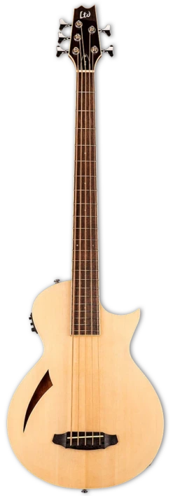 The LTD Thinline TL-4 and 5-string TL-5 basses are perfect for bass players looking for the best of both acoustic and electric worlds. They offer a chambered mahogany body with spruce top in Natural finish, paired to a comfortable three-piece thin U-shaped mahogany neck and rosewood fingerboard using set-neck construction at 34” scale. High-quality components on the TL-4 and TL-5 include a Graphtech Nubone XB nut, Grover tuners, and an active Fishman S-Core pickup and TL-3 preamp with onboard tuner. These pro-quality basses are ready for just about any musical style including pop, jazz, R&B, reggae and much more, and remain affordable enough for the needs of nearly any recording and touring musician.