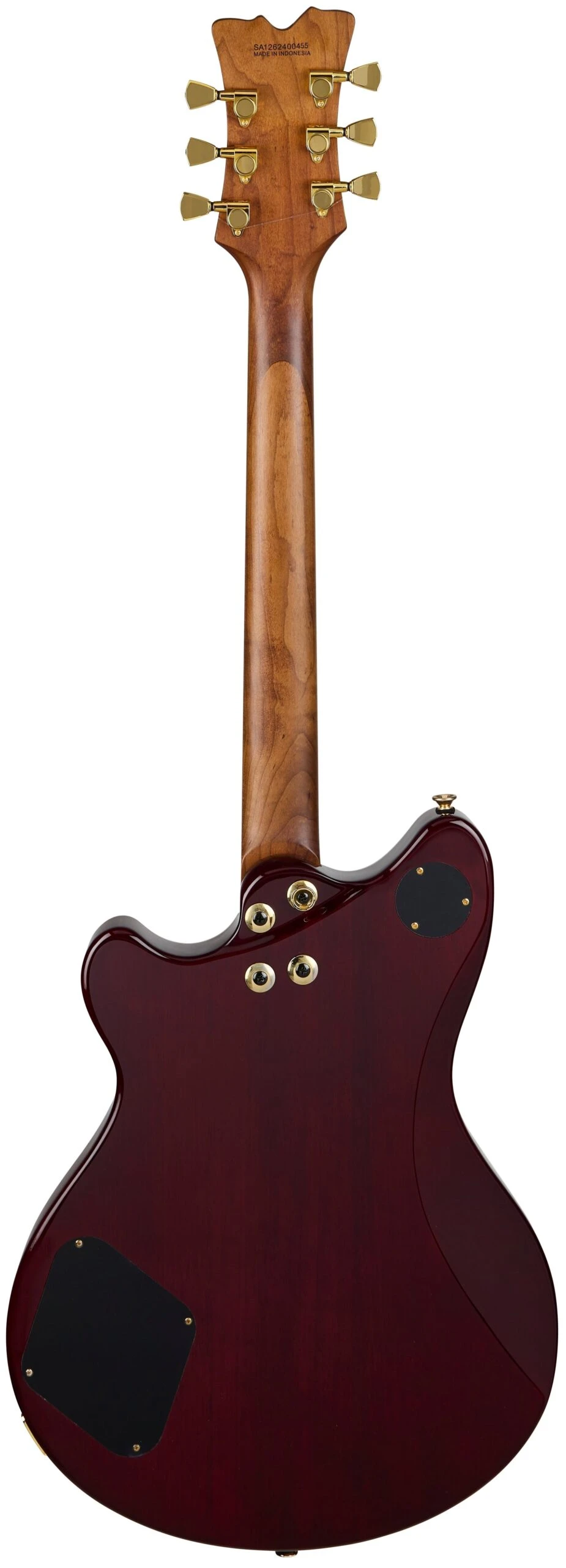 The all-new SA-126 Standard features a Mahogany body that is chambered, with a Mahogany Centerblock added for stability and tone. Capped with a maple top and masked off natural body binding for a classic and clean look. The neck is a 22 fret 12”-16” compound Rosewood fingerboard with jumbo frets and re-imagined block inlays on a graphite reinforced baked maple neck. With a scale length of 24 and three quarters… this feels like a modern – classic that is familiar and comfortable. Finally, a spoke wheel truss rod adjustment at the butt end of the neck for easy adjustments, on the fly.