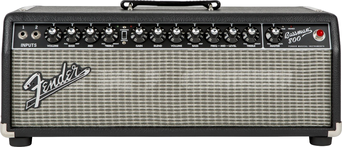 The foundation of the Bassman 800’s tone is the two-channel tube preamp. Powered by a pair of premium 12AX7 tubes, this flexible preamp offers Vintage and Overdrive voicings, making it perfect for any style of music. The Vintage channel provides classic Fender bass tone thanks to its highly interactive passive tone circuit that cuts frequencies instead of boosting them, giving each note a distinctive thickness with no high end fizz. The Overdrive channel cranks out genuine tube-driven overdrive, while its active 3-band tone circuit with variable mid frequency and blend control makes it easy to unleash a variety of sonic flavors, ranging from polite to aggressive. This highly musical preamp is matched to a cool-running solid-state Class D power amp that delivers an arena-filling 800 watts of power.