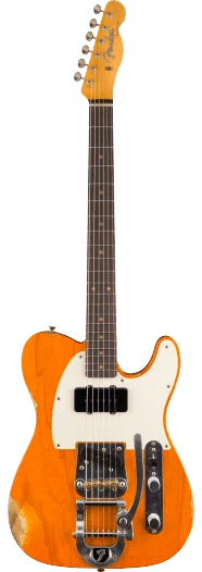 The quartersawn 2A flame maple neck sports a ’60s Oval “C” back-shape, flat-laminated rosewood fingerboard, 21 Narrow Tall (6105) frets and 9.5” radius for an incredibly comfortable playing experience and stunning looks. With the unorthodox combination of pickups, players get a heavy dose of ‘50s Telecaster® tone with a Custom Shop Hand-Wound ’50-’51 Blackguard Bridge Pickup, and a taste of the ‘60s with a Custom Shop Hand-Wound Flat Magnet Jazzmaster® Neck Pickup. Like a rug that ties a whole room together, the Bigsby® B5 Vibrato Tailpiece brings the guitar into focus with expressive pitch bending right in the palm of the player’s hand.