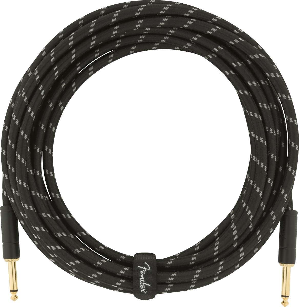 Fender Deluxe Series cables carry the highest quality materials and braided shielding to deliver flagship durability, conductance and transparency. Our top-of-the-line cables sport custom molded ends with strain relief under the housing—plus 24K gold-plated connectors that won’t tarnish or degrade your sound over time. These cables use a very quiet braided shielding that is engineered to maximize the purity of your tone, and they’re protected by a soft-woven yet rugged tweed jacket that provides ultimate protection with classic Fender style.