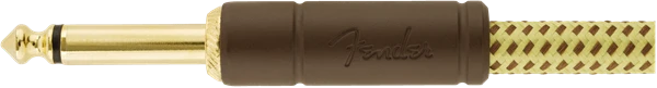 Fender Deluxe Series cables carry the highest quality materials and braided shielding to deliver flagship durability, conductance and transparency. Our top-of-the-line cables sport custom molded ends with strain relief under the housing – plus 24K gold-plated connectors that won’t tarnish or degrade your sound over time. These cables use a very quiet braided shielding that is engineered to maximize the purity of your tone, and they’re protected by a soft-woven yet rugged tweed jacket that provides ultimate protection with classic Fender style.
