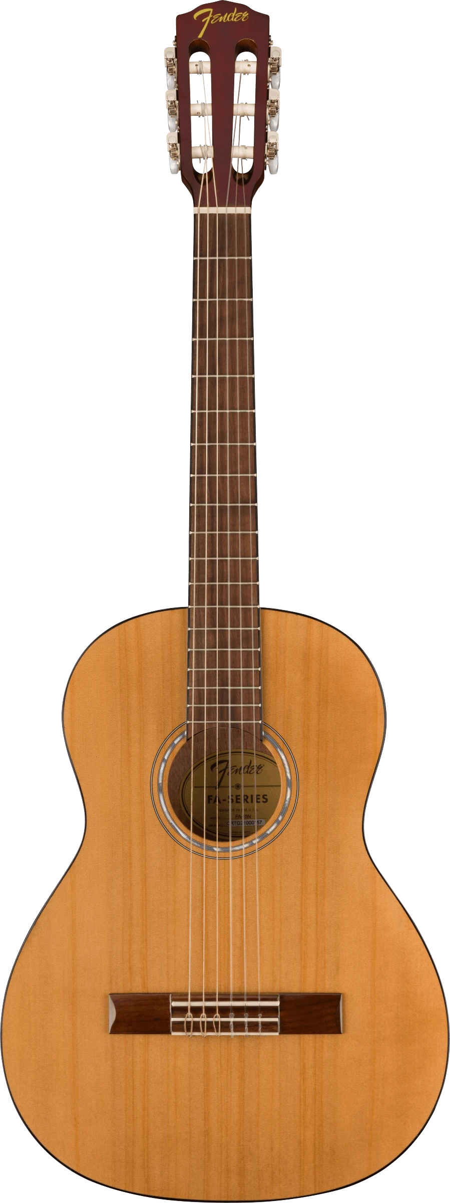 The ¾-size nylon-string FA-15N guitar offers a visually stunning instrument at a budget-friendly price. Quality laminate construction with a modern Fender 3+3 headstock and walnut bridge create an instrument that is not only easy to play, but also sounds great. Beginners and developing players will appreciate the style of this guitar, which features a mahogany neck that gives the guitar a lively tone and feel.