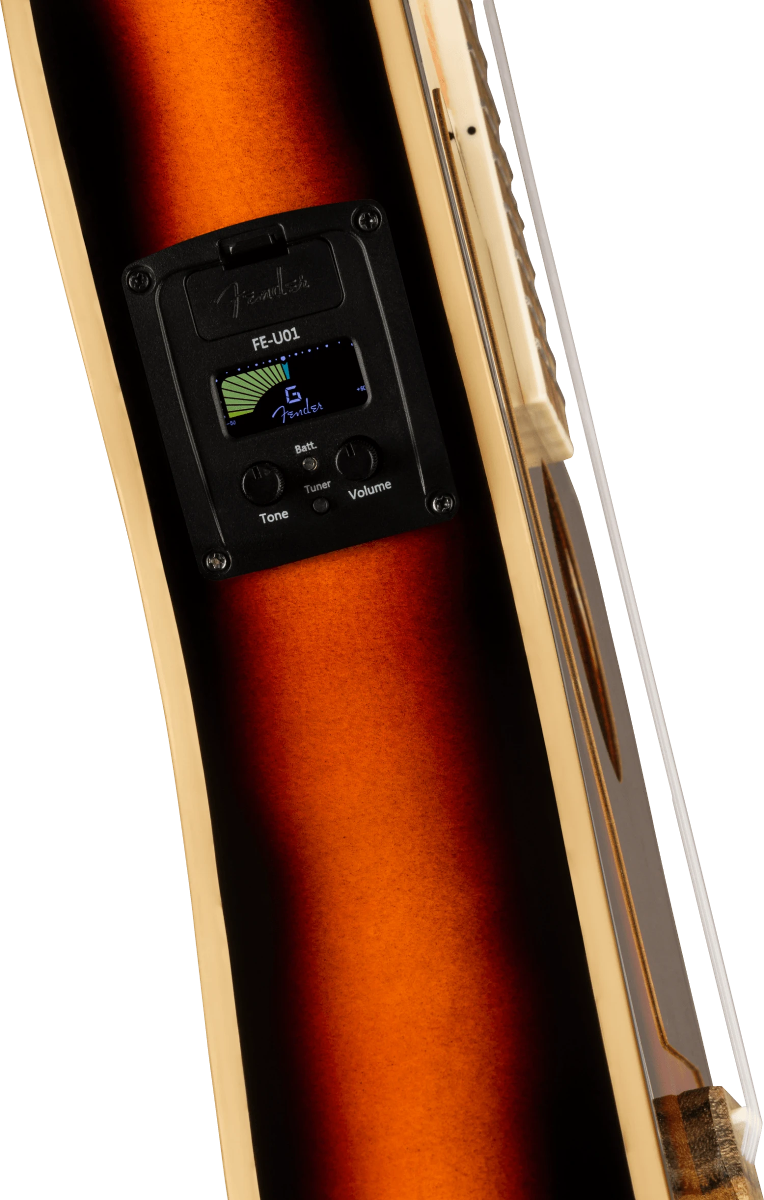 - Controls: Volume, Tone, Integrated Electronic Tuner with On/Off Switch, Low Battery Indicator Light