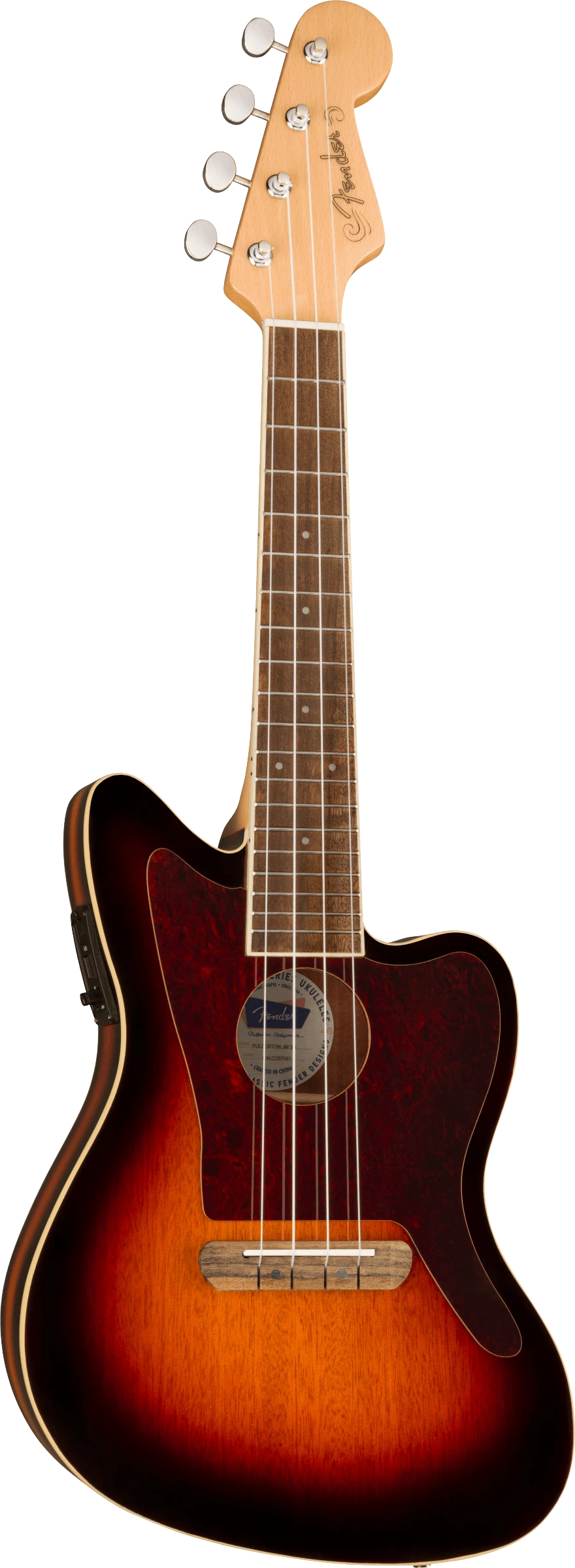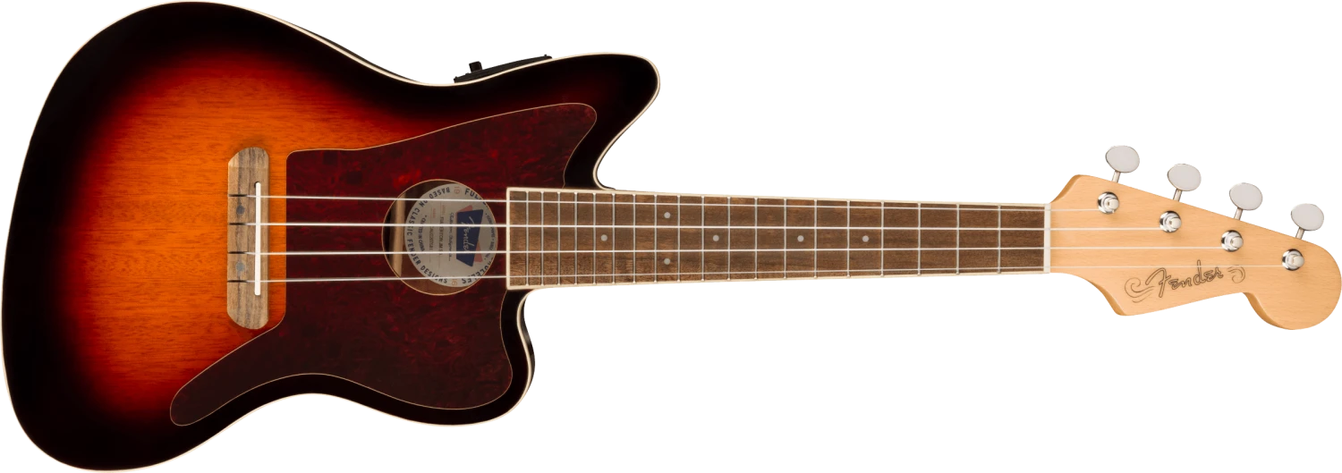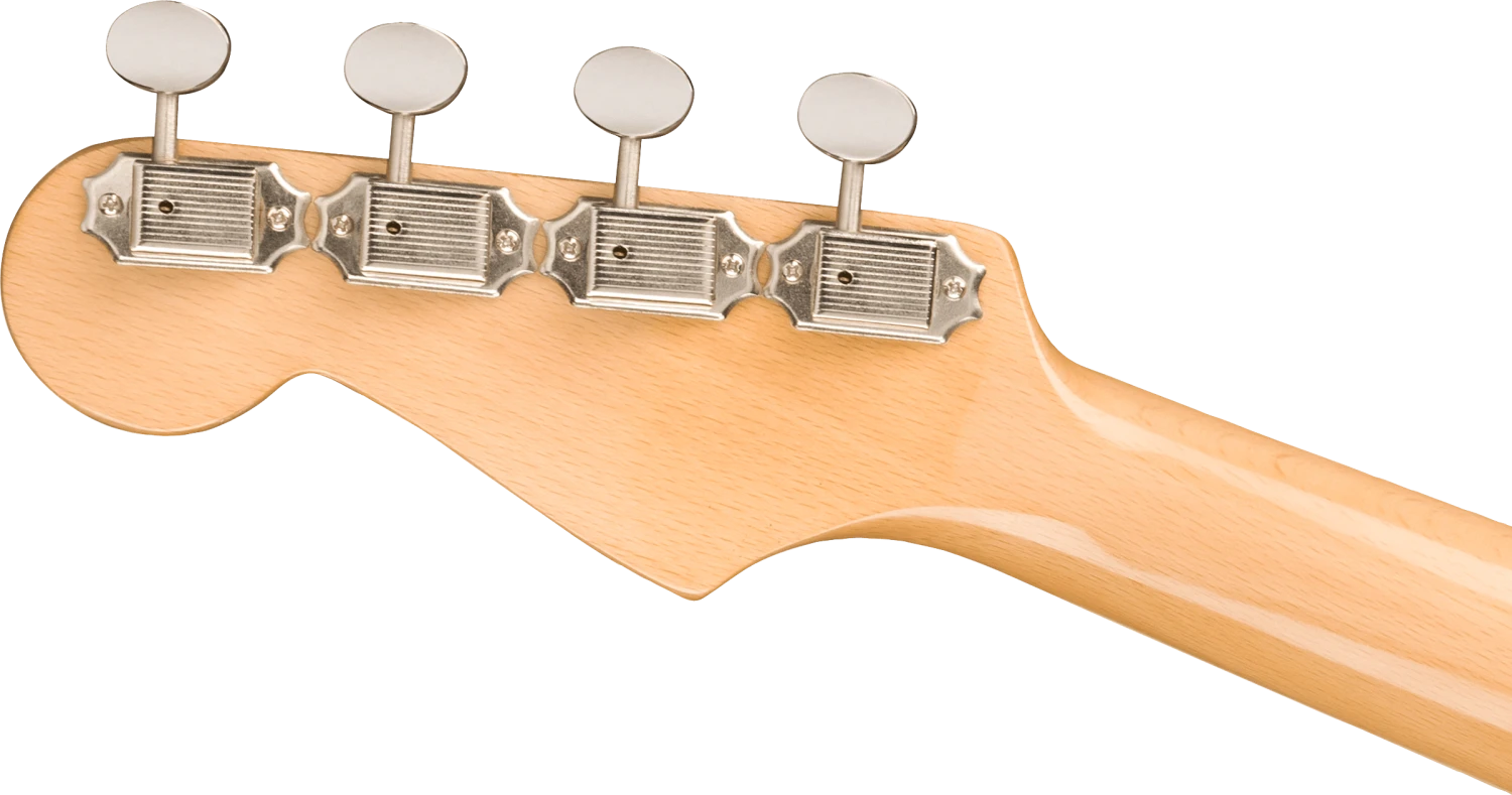 Tipping the hat to Fender’s iconic guitar body shapes, the Fullerton Series ukuleles are nothing short of electric. The Fullerton Jazzmaster departs from traditional ukulele construction and aesthetics, while remaining faithful to Fender’s history. The Jazzmaster ukulele’s pickguard, signature finish color options, and 4-in-line headstock can only be categorized as quintessentially Fender. The Fullerton Jazzmaster is the perfect choice for the ukulele player looking to inject the spirit of rock ‘n roll into every performance.
