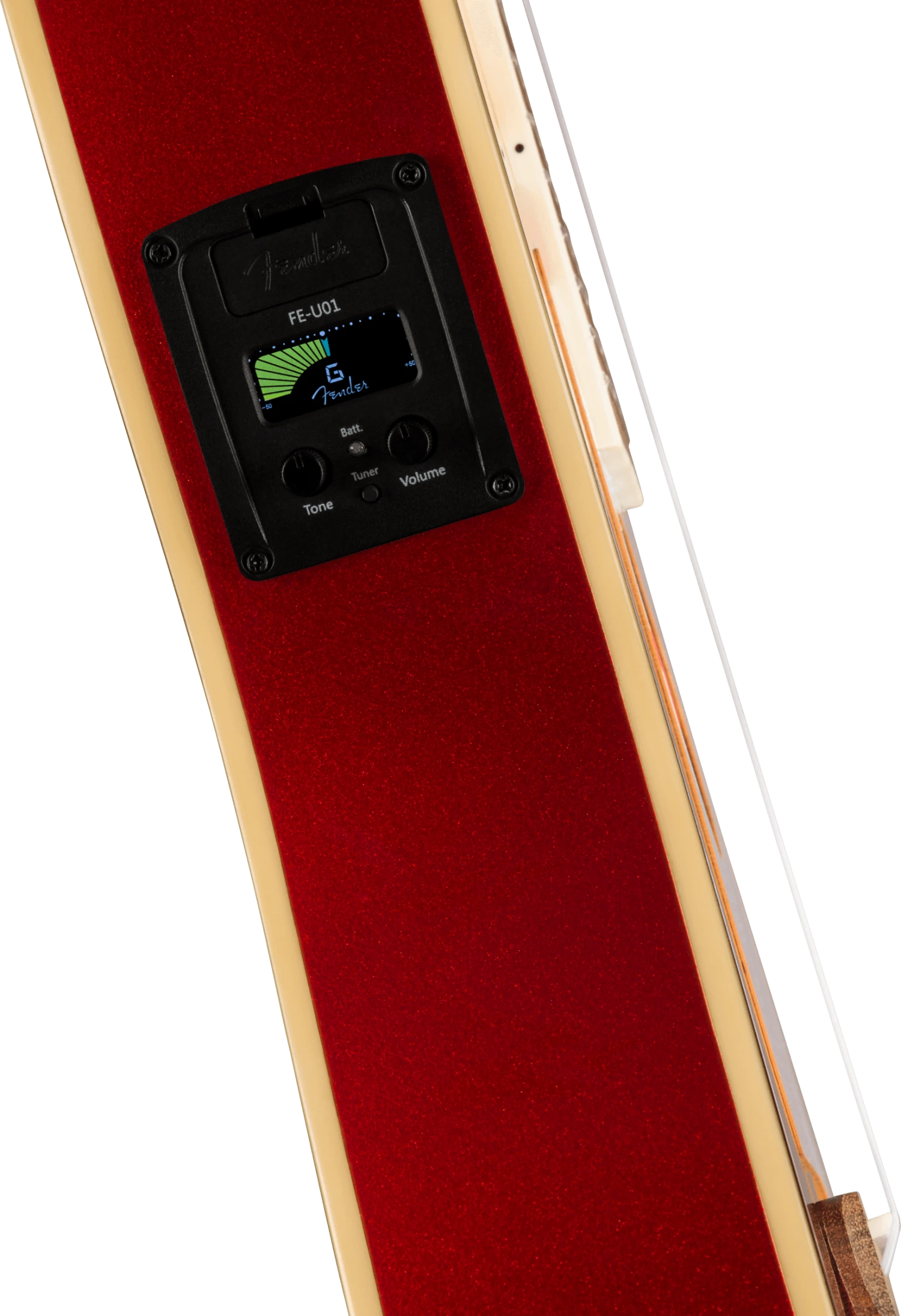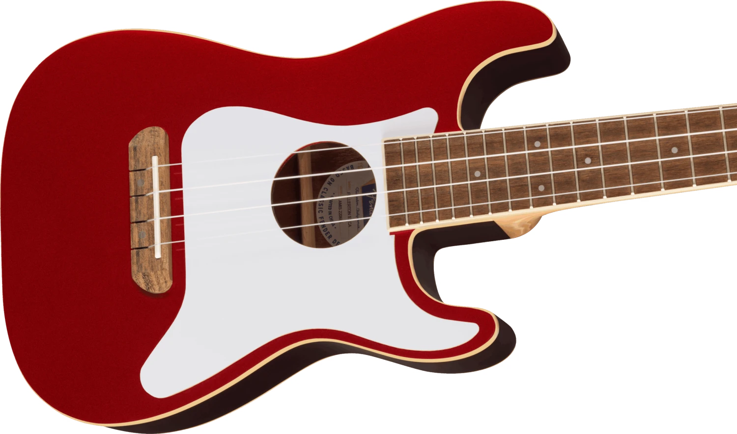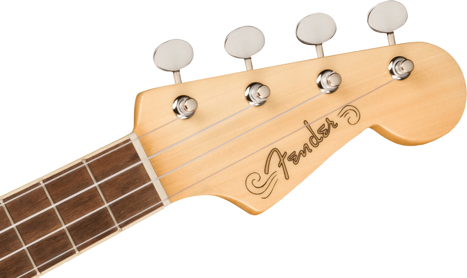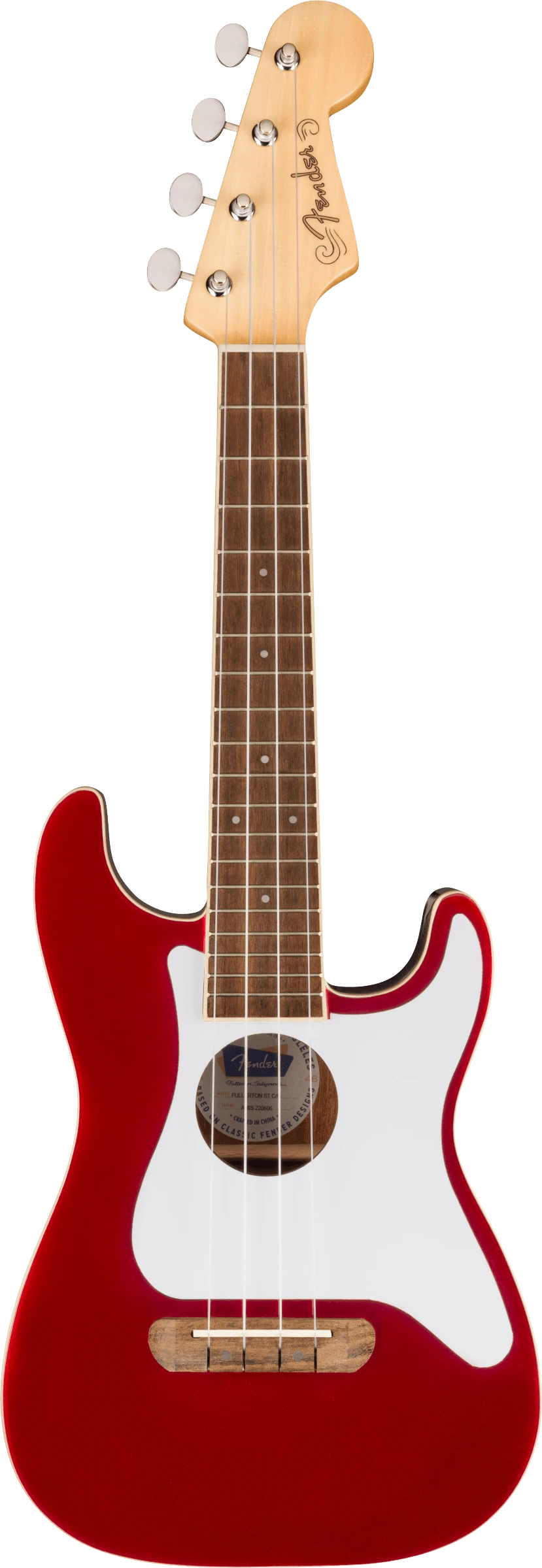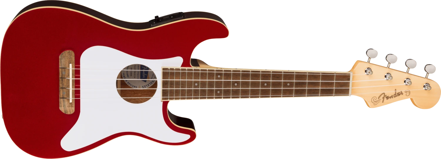 Tipping the hat to Fender’s iconic guitar body shapes, the Fullerton Series ukuleles are nothing short of electric. The Fullerton Stratocaster departs from traditional ukulele construction and aesthetics, while remaining faithful to Fender’s history. The Stratocaster ukulele’s pickguard, signature finish color options, and 4-in-line headstock can only be categorized as quintessentially Fender. The Fullerton Stratocaster is the perfect choice for the ukulele player looking to inject the spirit of rock ‘n roll into every performance.