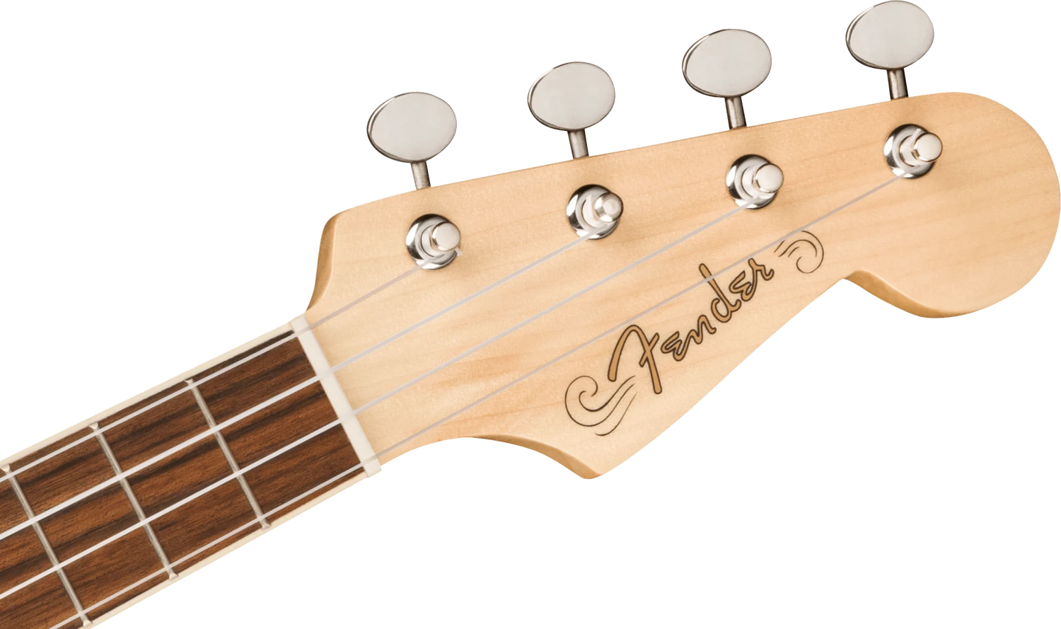 Tipping the hat to Fender’s iconic guitar body shapes, the Fullerton Series ukuleles are nothing short of electric. The Fullerton Stratocaster departs from traditional ukulele construction and aesthetics, while remaining faithful to Fender’s history. The Stratocaster ukulele’s pickguard, signature finish color options, and 4-in-line headstock can only be categorized as quintessentially Fender. The Fullerton Stratocaster is the perfect choice for the ukulele player looking to inject the spirit of rock ‘n roll into every performance.