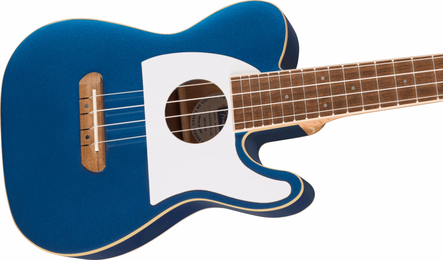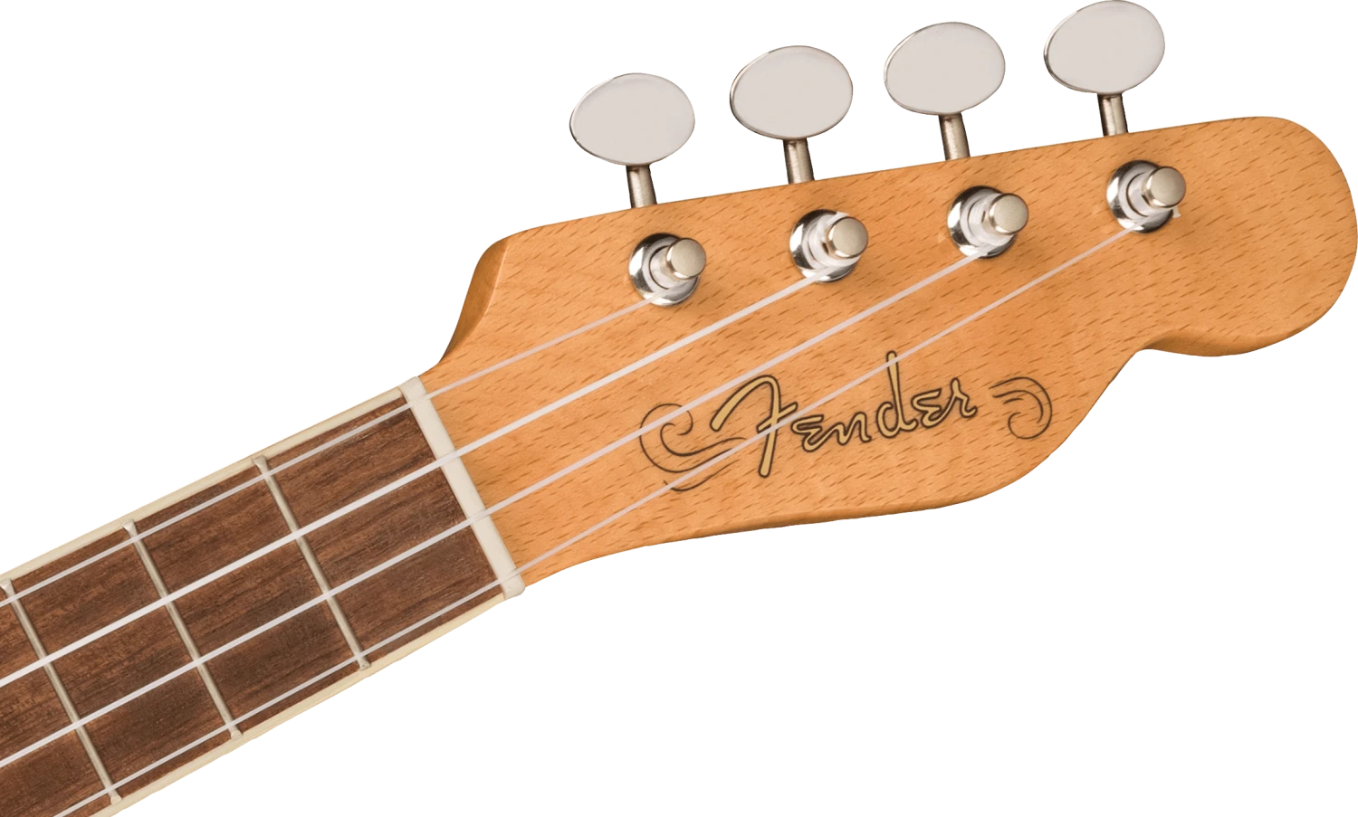 Tipping the hat to Fender’s iconic guitar body shapes, the Fullerton Series ukuleles are nothing short of electric. The Fullerton Telecaster departs from traditional ukulele construction and aesthetics, while remaining faithful to Fender’s history. The Telecaster ukulele’s pickguard, signature finish color options, and 4-in-line headstock can only be categorized as quintessentially Fender. The Fullerton Telecaster is the perfect choice for the ukulele player looking to inject the spirit of rock ‘n roll into every performance.