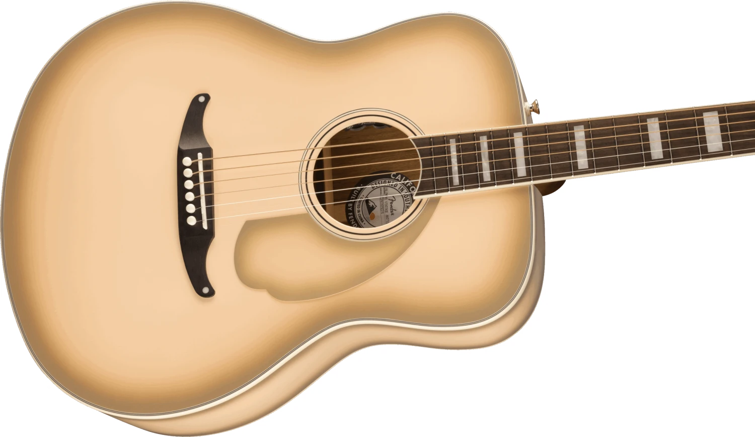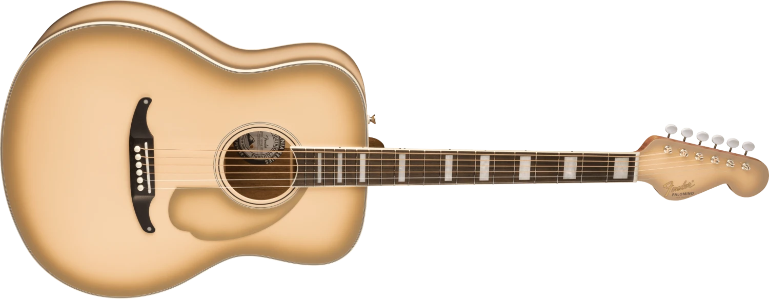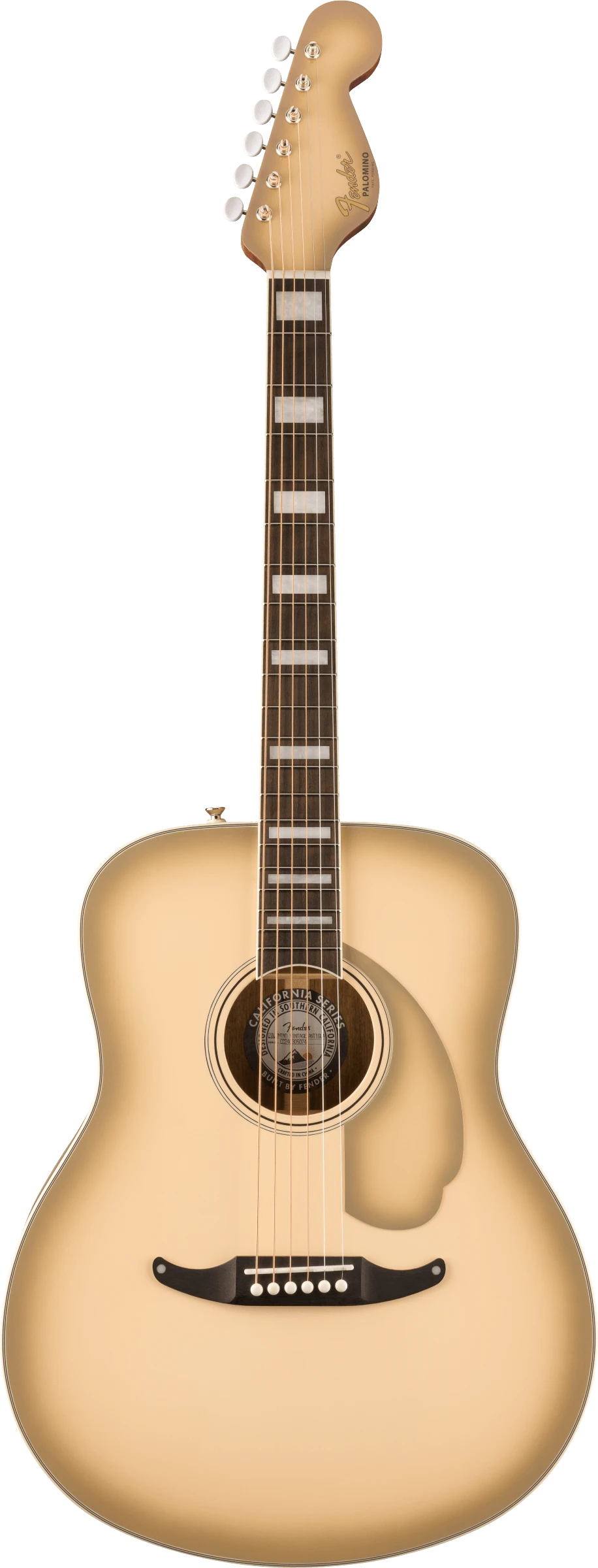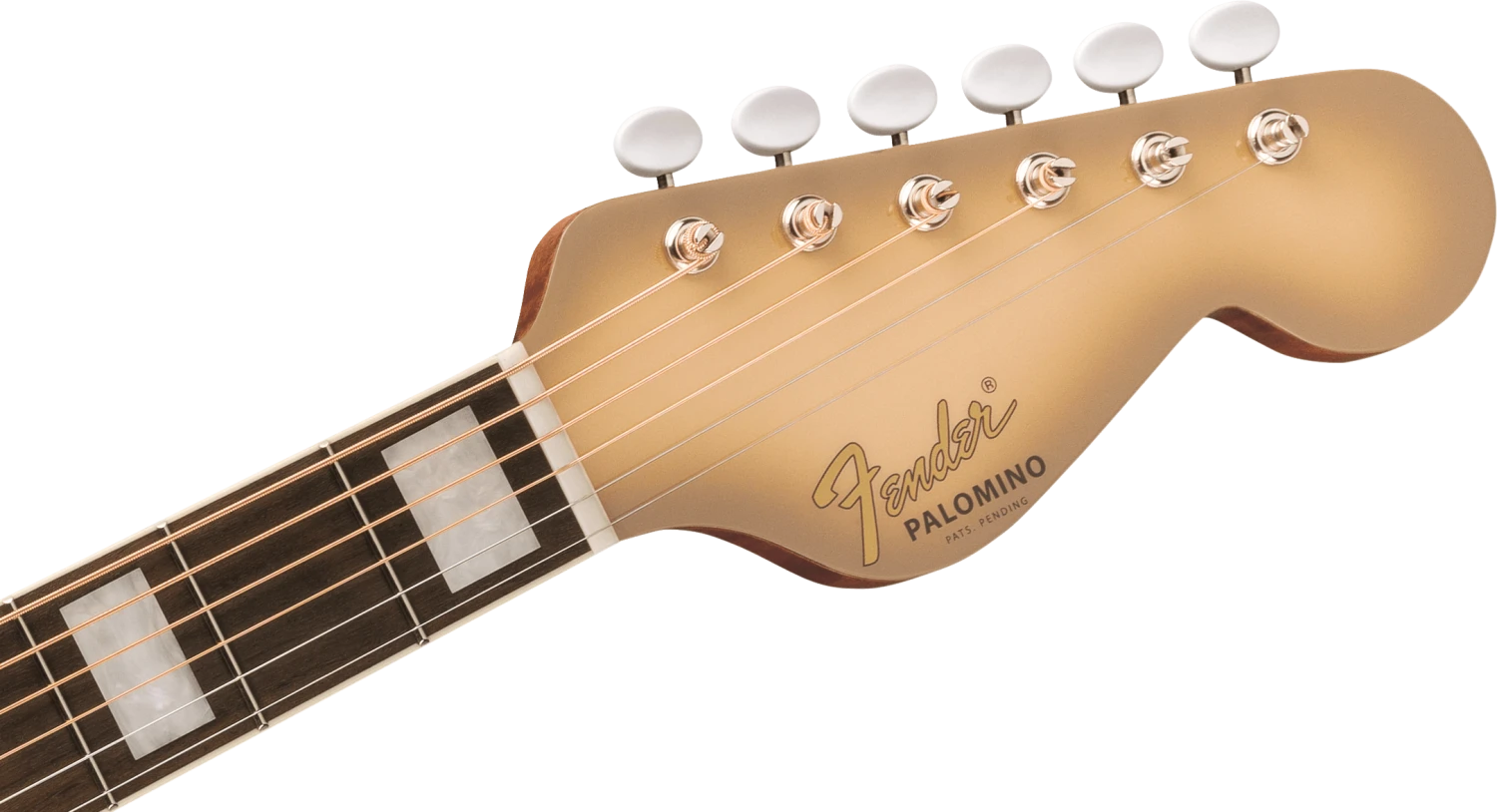 Engineered with an innovative Performance X™ bracing pattern, the mid-size auditorium body of the Fender California Vintage Palomino is lightly crafted with a solid Sitka spruce top and solid ovangkol back and sides to effortlessly produce a versatile, articulate voice with exceptional detail, clarity and balance. An ergonomic modern “V” profile was chosen for the the okoume neck along with a 25.5″ scale length for optimal sustain, and a tilt-back 6-in-line headstock with a matching headcap for a distinctive look born from Fender’s electric guitar DNA. Other notable details include a bound ovangkol fingerboard with pearloid block inlays for a throwback look, vintage-style tuning machines for smooth, accurate tuning, and a bone nut and saddle for superior harmonic character. Designed for the performer, the onboard Fishman® Presys VT Plus preamp system features seamless soundhole-mounted controls that blend an undersaddle piezo and internal body transducer to allow faithful and reliable reproduction of the guitar’s natural sound when plugged into an amplifier or recording device. A vintage-style hardshell case is included.