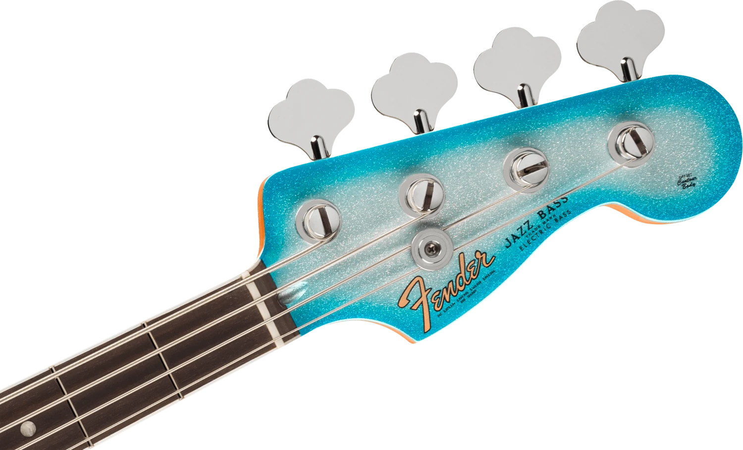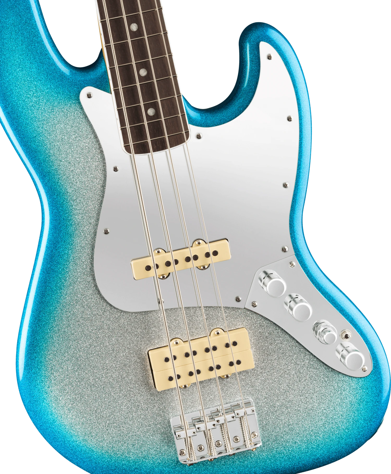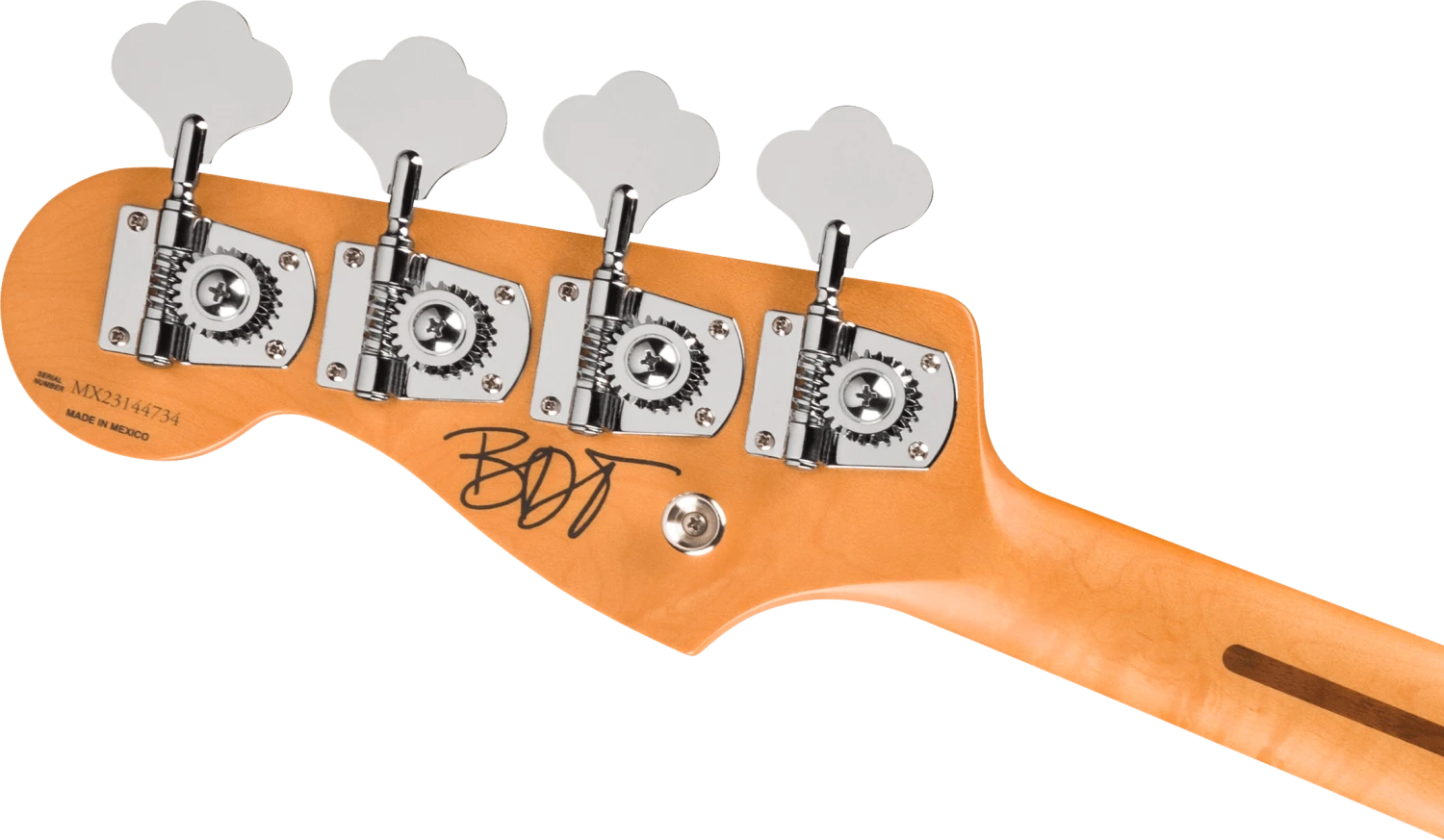 From the dazzling Sky Burst Sparkle to the gleaming chrome hardware and mirrored pickguard, every detail on this Jazz Bass echoes Blu’s bold artistic vision. The offset ash body is chambered to keep this bass as lightweight and comfortable as possible. The satin finished maple neck, bound 9.5” rosewood fingerboard and vintage tall frets provide smooth playability. The Custom Blu DeTiger Fireball® bass humbucker and Player Plus Noiseless™ Jazz Bass Pickups fuse vintage charm with modern punch. The bass also includes an 18V Player Plus preamp with 3-band EQ and active/passive toggle, great for sculpting your tone and ideal for capturing the funky snap and growl that defines Blu’s sound.