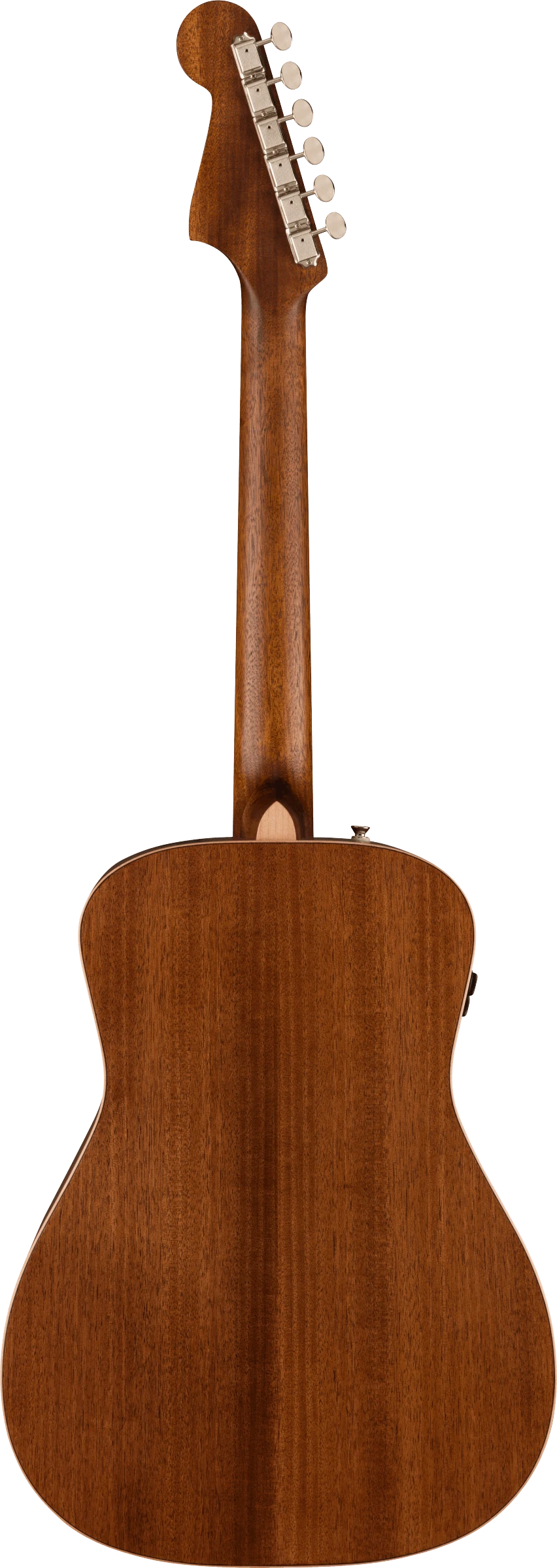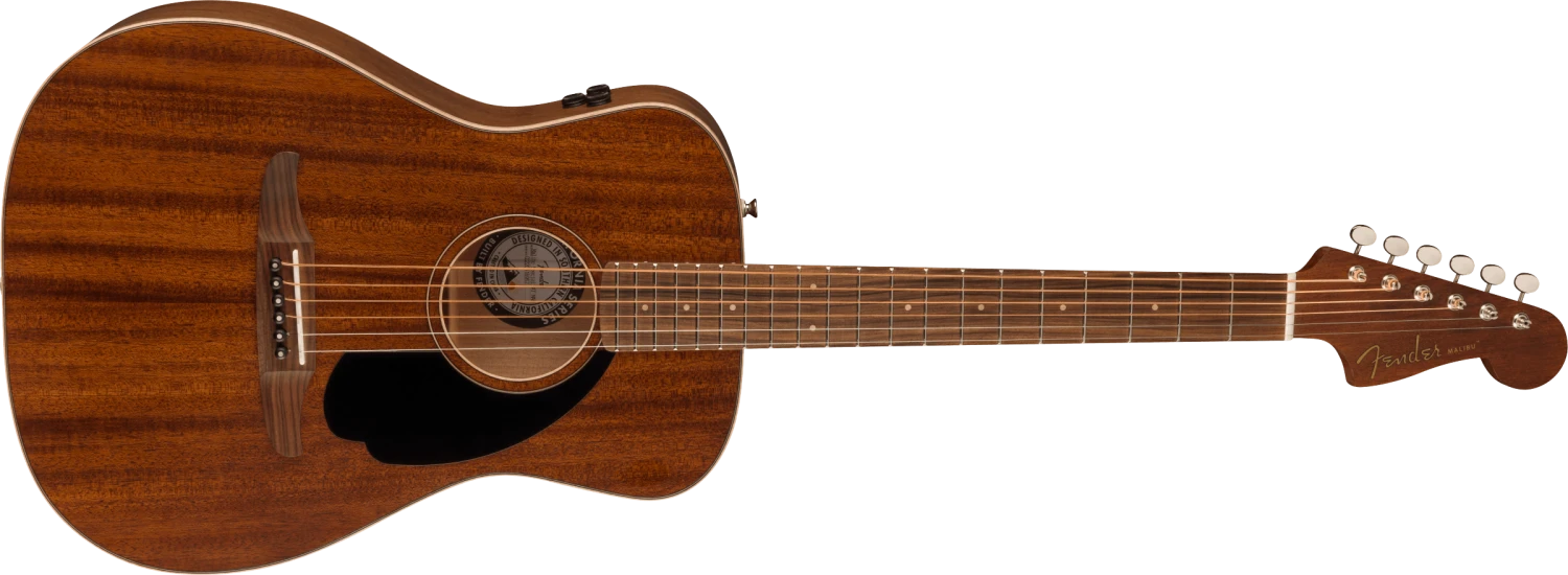 Crafted with an X-braced solid okoume top and solid okoume back and sides, the compact parlor-sized body of the Malibu Special produces a voice that’s impressively articulate, punchy, and delicate, while offering superior comfort for hours of creativity. The neck is designed with an easy-to-play slim “C”-shaped profile, a short 24″ scale length, and a tilt-back 6-in-line headstock for a distinctive look born from Fender’s electric guitar DNA. Other notable details include vintage-style tuning machines for smooth, accurate tuning, a maple rosette and body binding for an upscale look, and a bone nut and saddle for rich harmonic character. Designed for the performer, the Fishman® Flex Body preamp system blends an undersaddle piezo and internal body transducer to allow faithful and reliable reproduction of the guitar’s natural sound when plugged into an amplifier, PA system or recording device.