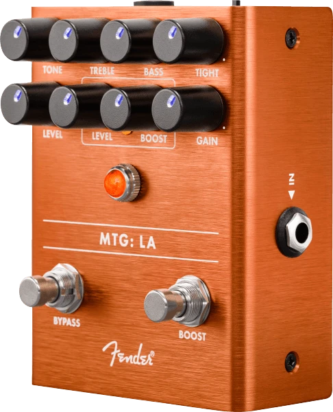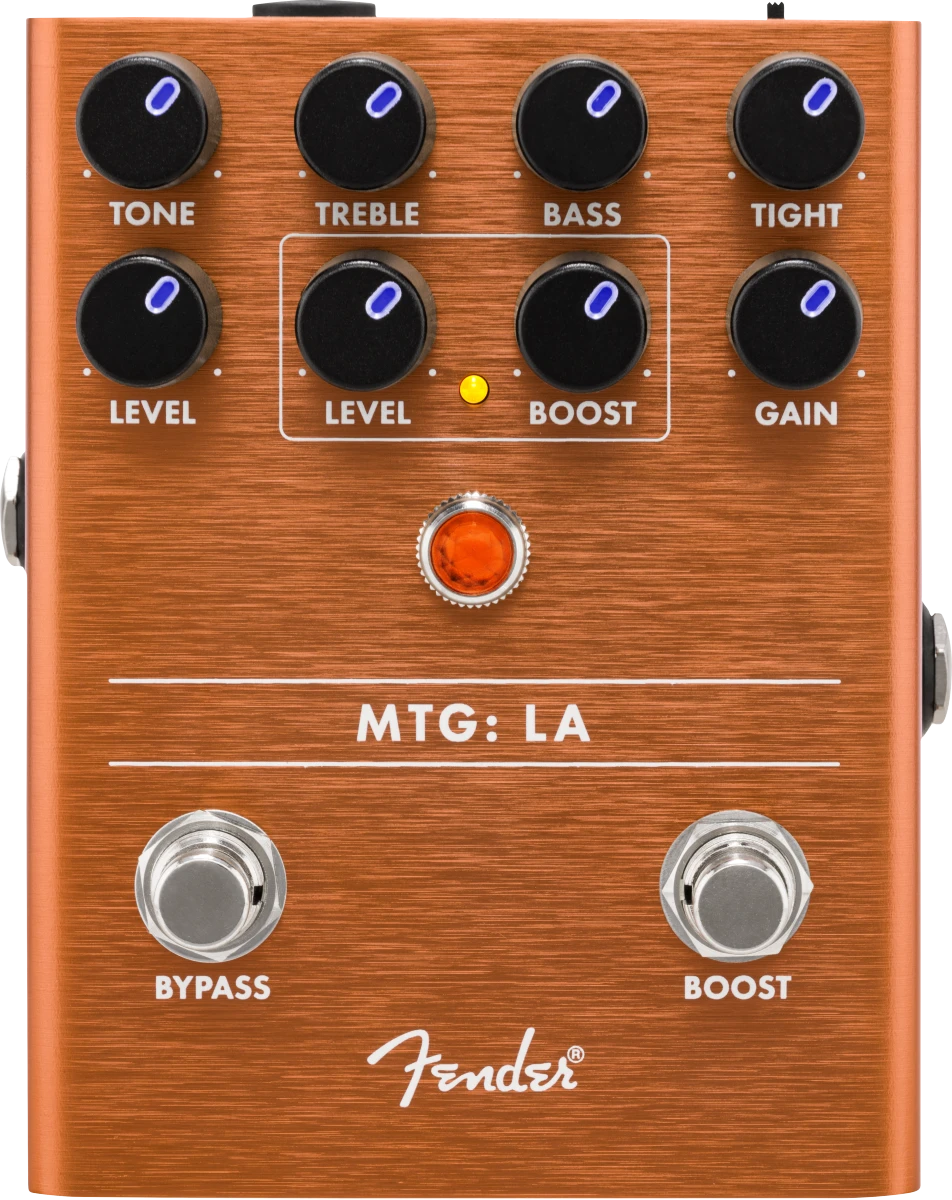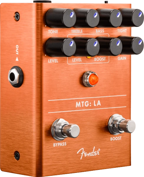 Few things are as satisfying as the real-deal distortion sound of glowing glass—vacuum tubes are responsible for the tones you fell in love with. MTG:LA® is a tube distortion pedal based around a genuine, U.S.-made NOS 6205 preamp tube. Tone, Bass, Treble and Tight controls make it easy to shape your sound, while the distinctly Fender footswitchable Boost adds Volume, Gain or both to make your solos stand out.