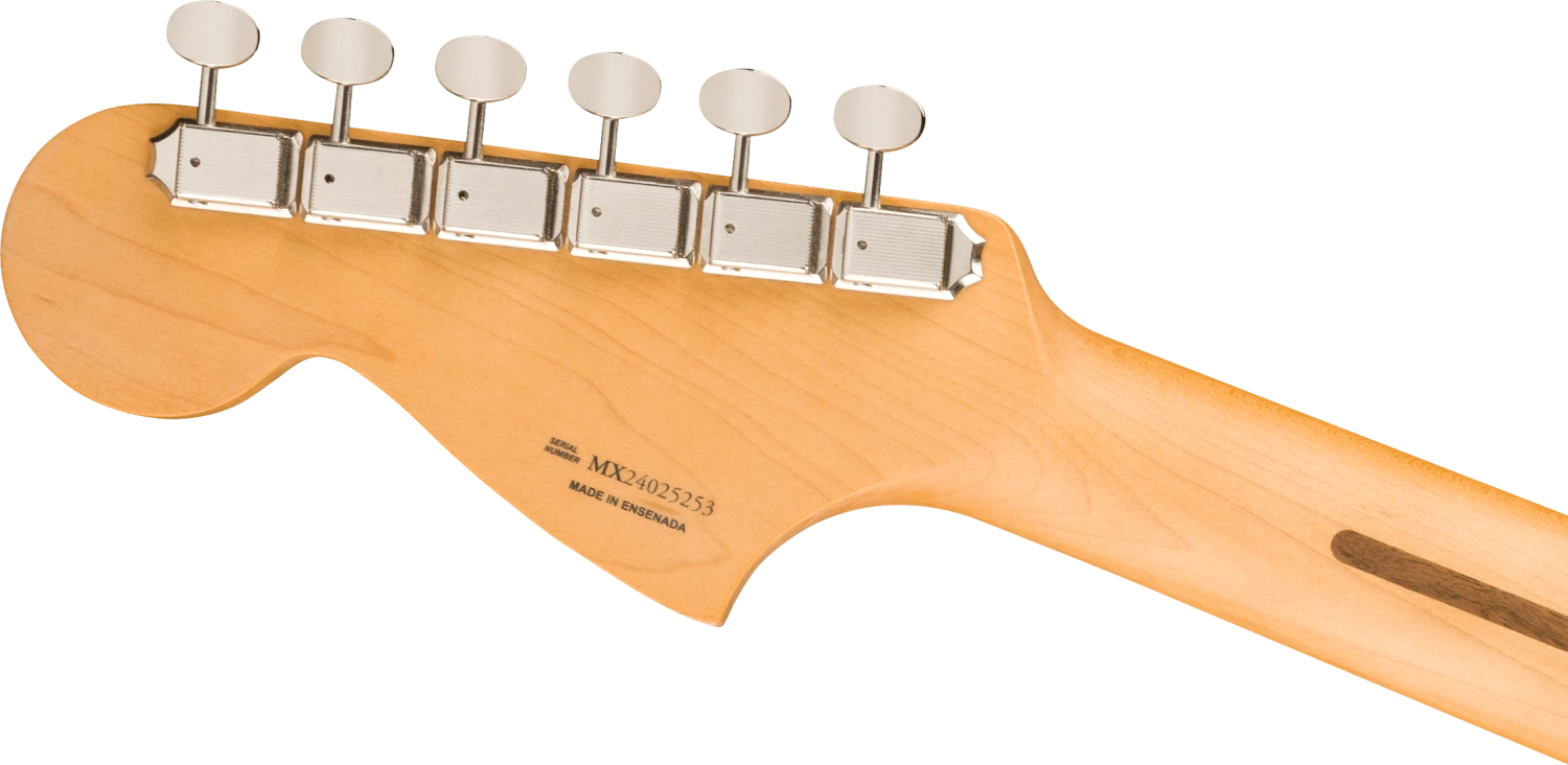 The Player II Mustang radiates timeless Fender charm, but under the hood, it’s primed for today’s players. Everything about the neck is designed for fast and fluid playability, from the Modern “C”-profile with silky satin urethane finish on the back to the comfy 9.5”-radius slab rosewood or maple fingerboard with smooth rolled edges and 22 medium jumbo frets. A classic alder body is available in both timeless Fender finishes and never-before-seen colors unearthed from the archives. Player Series Alnico V Single-Coil Mustang® pickups offer crystalline highs, musical mids and tight lows that elevate any genre. The 3-way toggle switch lets you easily dial in everything from glassy neck pickup chime to cutting bridge pickup snarl and all points in between, while a 6-saddle hardtail bridge, bent steel saddles and ClassicGear™ tuners ensure precise tuning stability for the flexibility to explore endless sonic possibilities.