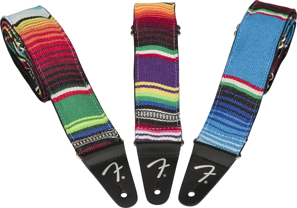 Inspired by the bold patterns and unmistakable fabrics of Mexican Blankets, the Serape strap is a stylish and functional way to keep your instrument secure. This one-of-a-kind strap is crafted from an authentic Mexican Blanket reinforced by polyester seatbelt backing with a silver nickel slider. Offered in three multi-color designs, this strap is as eye-catching as it is comfortable.