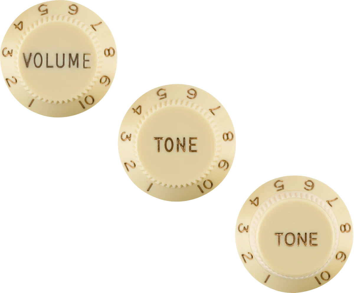 Fender Stratocaster Knobs, Aged White (Volume, Tone, Tone) (3) Left-Handed – Fender