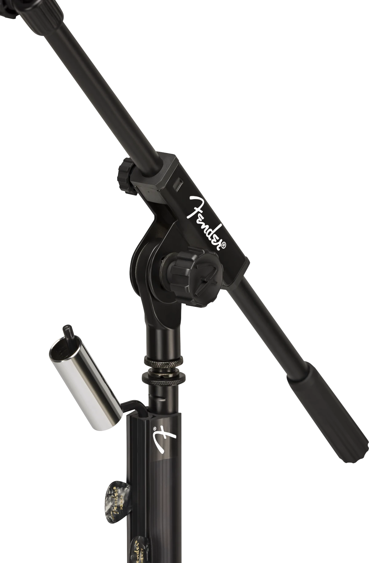 Featuring a strong arm to fix your mic securely in place at all adjustment levels, the Telescoping Boom Mic Stand was engineered to ensure stable positioning throughout extended performances and practice sessions. The custom embossed “F” Fender grip components and height adjustment twist clutch allows for quick, on-the-fly adjustments on stage. The Fender Telescoping Boom Mic Stand also includes a removable pick and slide holder that is easily attachable and detachable. Crafted from durable rubber, this clip-on accessory holds up to 12 picks for quick access and storage. The slide holder accommodates all standard slides and is also removable.