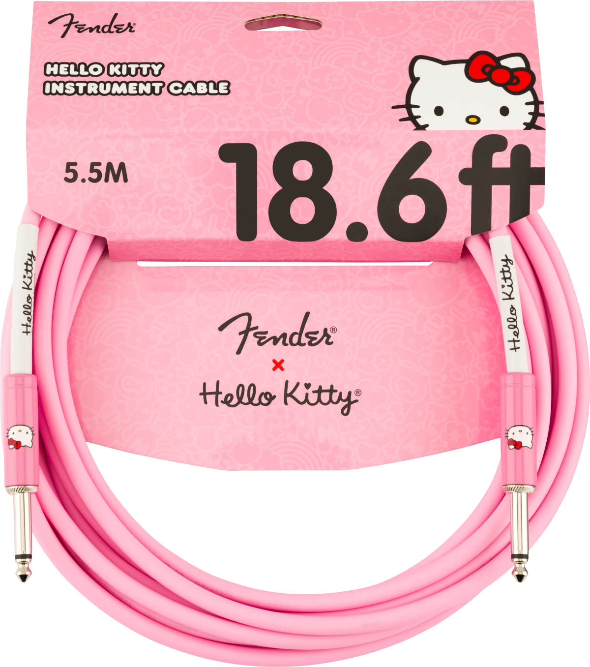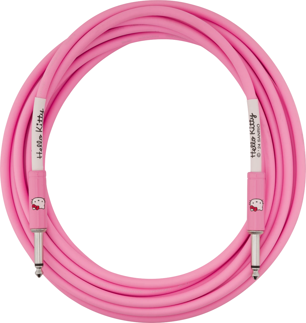 Featuring a bold pink PVC jacket with Hello Kitty printed on the custom cable ends, the Fender® x Hello Kitty® instrument cable combines fun and functionality. Constructed with durable nickel-plated connectors and spiral shielding for sonic transparency, this cable delivers exceptional sonic clarity and durability. Available in 10’ and 18.6’ lengths, this guitar cable is crafted from durable PVC and features straight 1/4-inch connectors on both ends. The 8mm wire jacket ensures reliable and solid construction, while the 23-gauge conductor improves signal path strength. Additionally, it includes 90% OFC spiral shielding for enhanced durability and nickel-plated connectors for reliable performance.