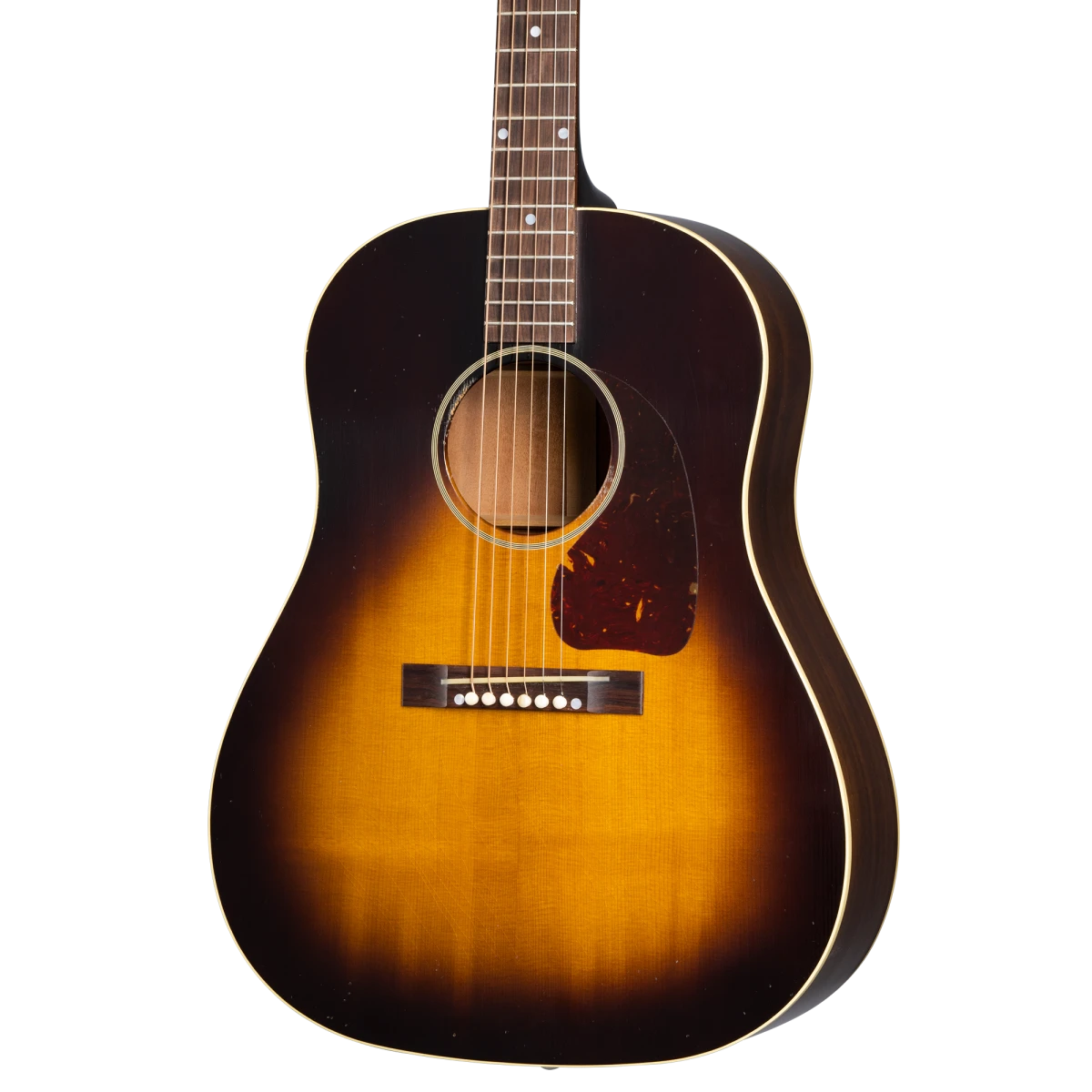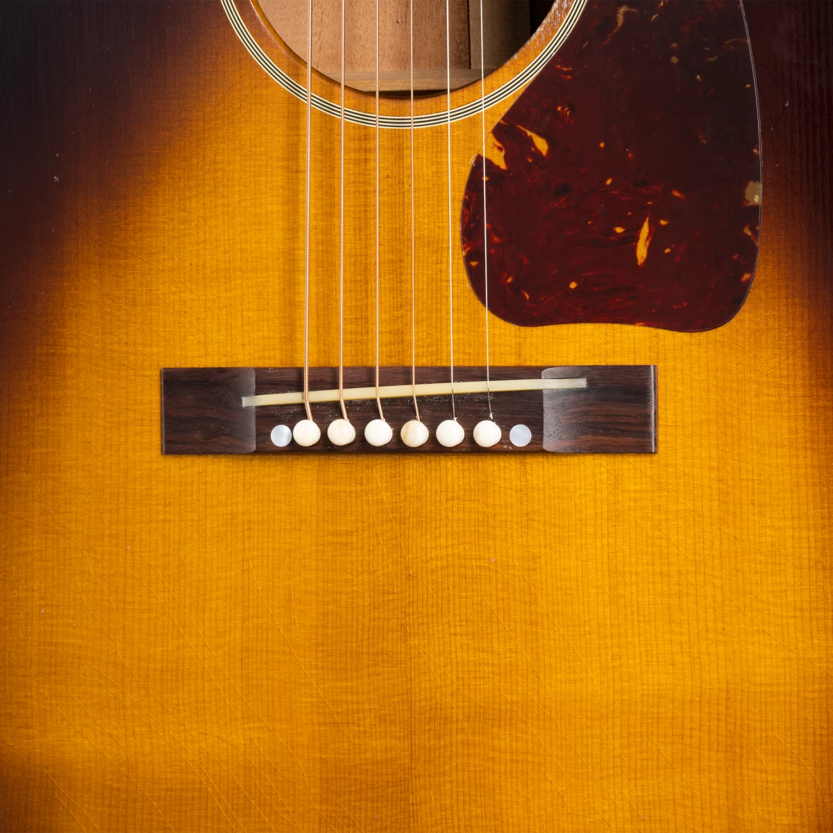 The allure and legend of the Gibson J-45™ live on in the new Murphy Lab 1942 Banner J-45. Inspired by the holy grail of vintage acoustic instruments, luthiers in Montana meticulously crafted a J-45 just like the most popular and celebrated version in structure and components. The new 1942 Banner J-45 includes a Thermally Aged Adirondack red spruce top hand-sprayed with a historic-style burst, hot hide glue top bracing for better tonal response, and a bone nut and saddle. It features Light Aging by the skilled artisans of the Murphy Lab. The Murphy Lab Light Aged finish treatment, paired with lightly aged hardware, simulates decades of light play wear, giving it the unique character, vibe, and feel of an original example from the Gibson Golden Era.