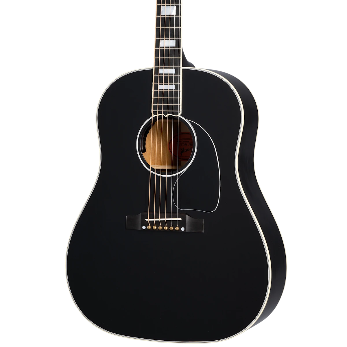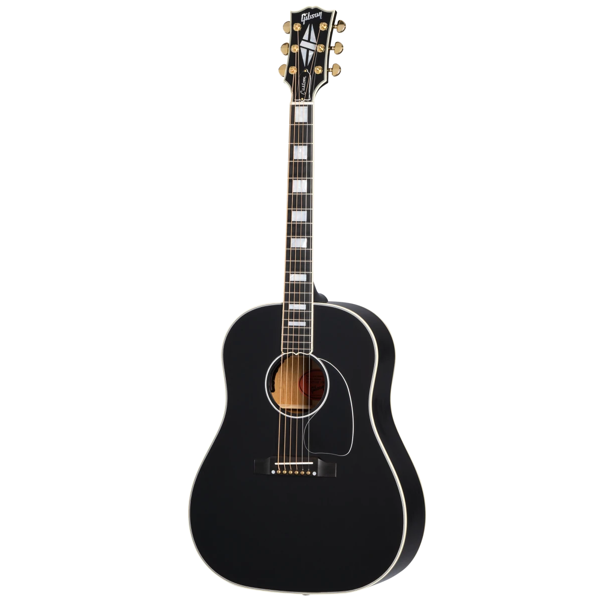 The J-45™ is the most popular Gibson acoustic model of all time. Its distinctive tone has made it the choice of musical legends across genres for decades. Now, the Gibson Custom Shop is proud to introduce the new J-45 Custom. The classic J-45 features that players demand are all here, including a Sitka spruce top, mahogany back and sides, and a mahogany SlimTaper™ neck with a 24.75” scale length. The J-45 Custom takes things to the next level with Les Paul™ Custom-inspired cosmetics, including an Ebony nitrocellulose lacquer finish, multi-ply binding on the top and back, a bound Les Paul-style peghead with a Custom split diamond inlay in mother of pearl, a bound ebony fretboard with mother of pearl Custom Block inlays, and gold Grover® Rotomatic® tuners. It comes equipped with L.R. Baggs™ Session VTC electronics and a hardshell case.