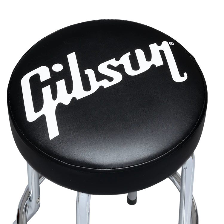 This 24″ high playing stool, adorned with the Gibson logo, features a comfortable, padded vinyl seat that swivels through 360 degrees. The classic barstool-style tubular steel legs have a chrome finish, and the stool has a foot ring for added comfort.