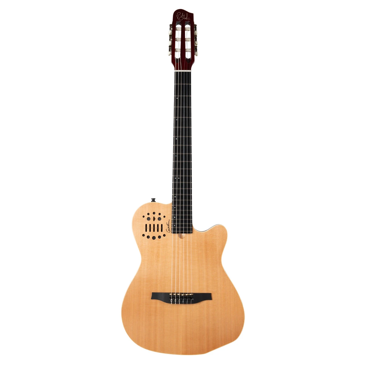 The ACS blends classical guitar concepts with elements of solid body design. The incredibly comfortable neck of the Multiac ACS, combined with a Maple body & Cedar top, contribute to making it our most affordable synth access guitar ever. Although the body is chambered, the response from the cedar top is more typical of a solid body design than a traditional acoustic guitar. This design results in an instrument that is virtually free of feedback, making it easy to use even when the band gets loud.