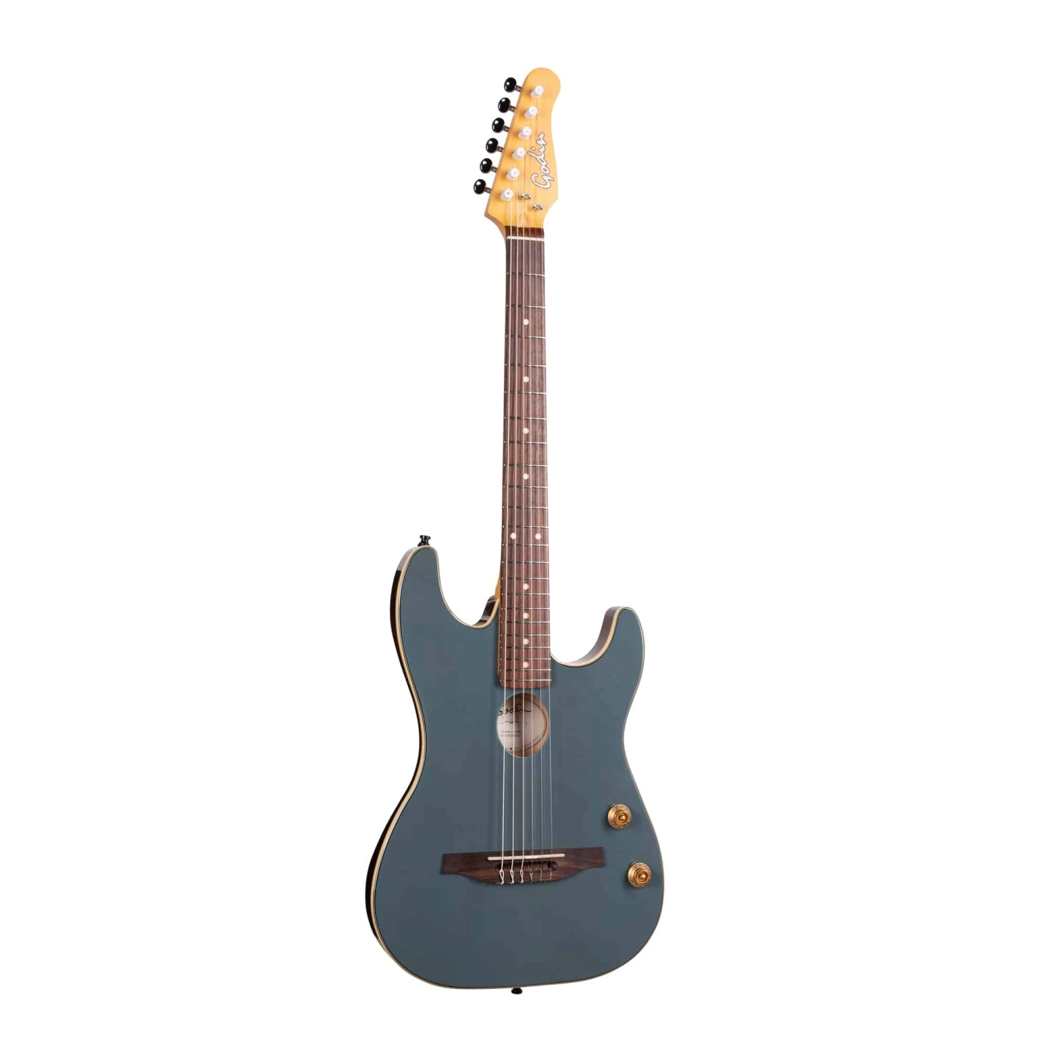 Imagine a nylon string guitar that delivers a rich plugged in sound – and fits right in with any rack of electric guitars – that’s the new Godin G-Tour Nylon Arctik Blue !