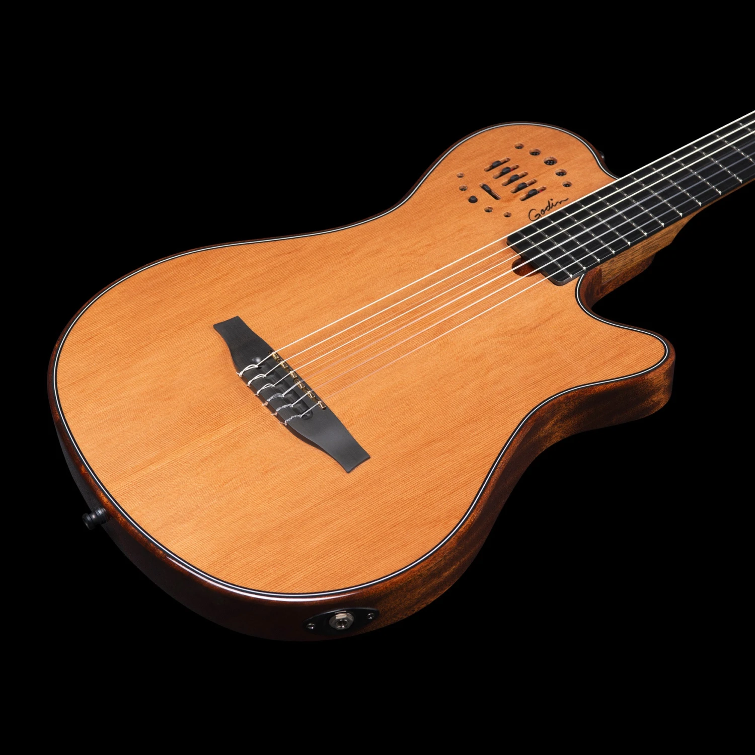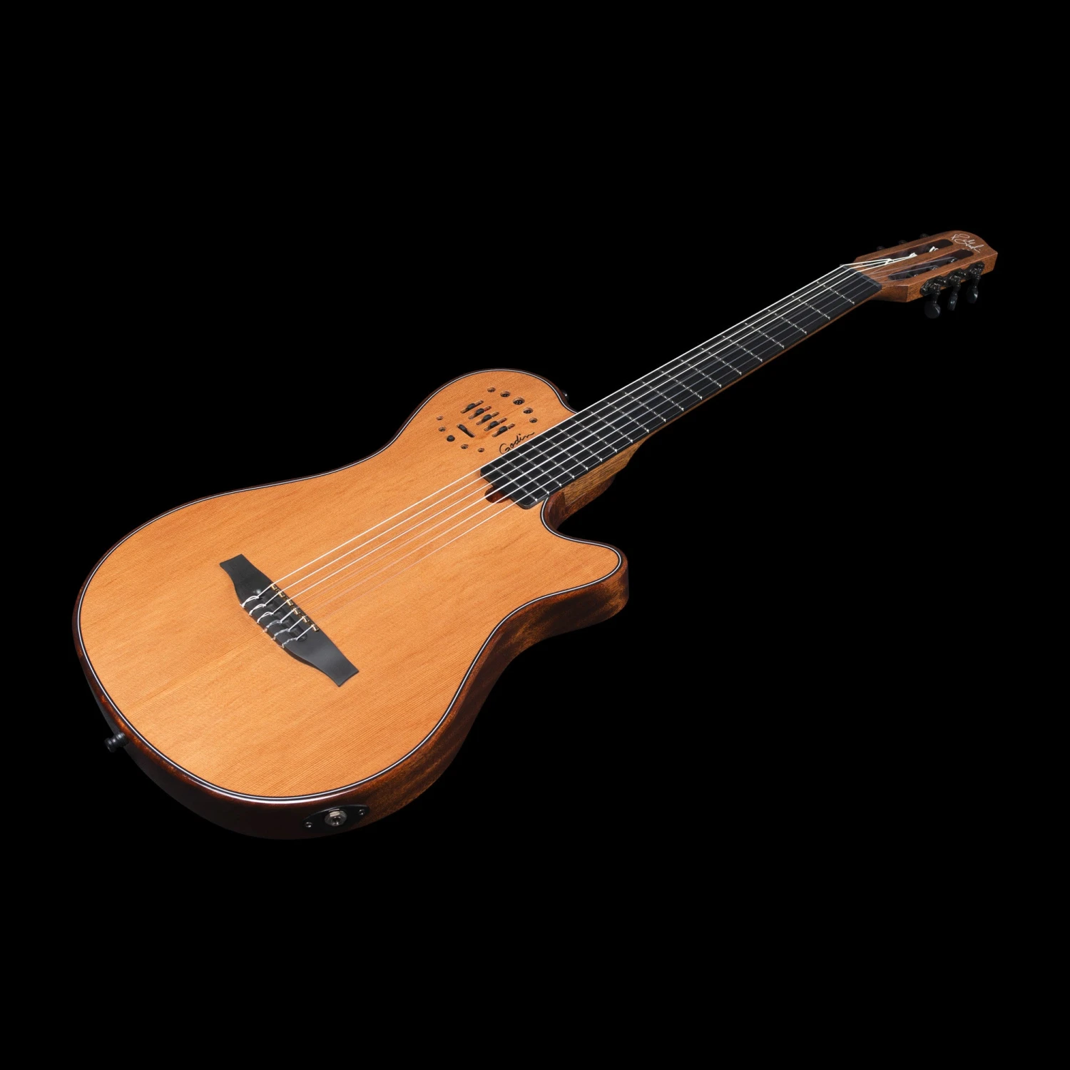 Take your nylon string playing to the next level with the Godin 053063 Multiac Grand Concert Mahogany Deluxe. Designed in collaboration with LR Baggs, it features a blendable Lyric mic and custom-voiced electronics for perfect tone control.