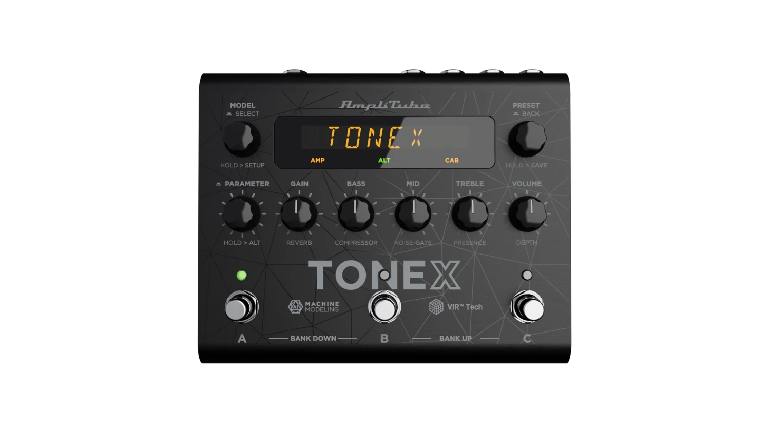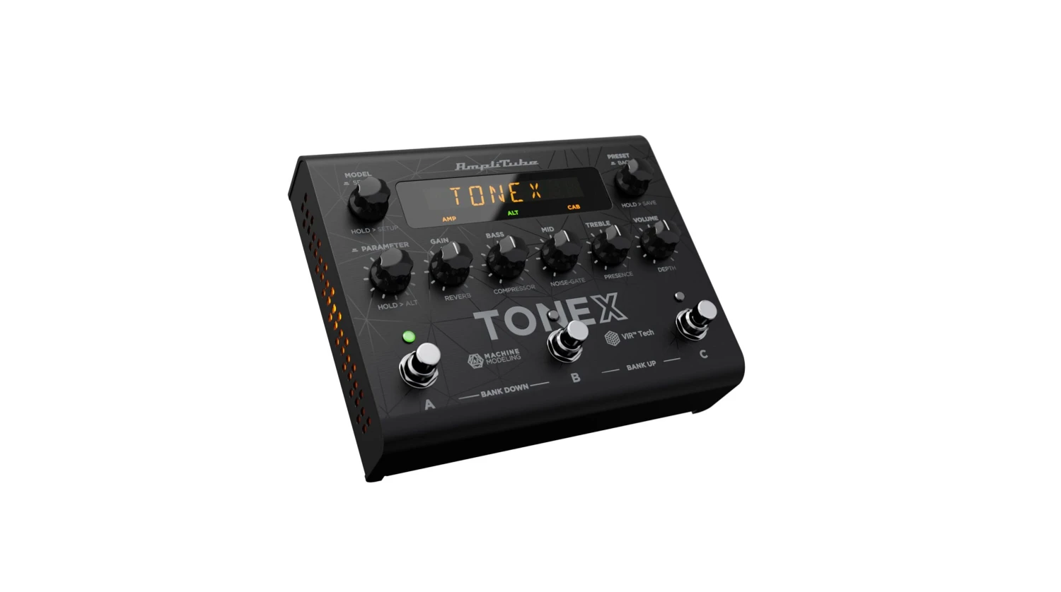 EFFECTS: TONEX Pedal provides an advanced noise gate, analog-modeled EQ and compressor, and stereo reverb derived from our award-winning AmpliTube X-TIME pedal.
