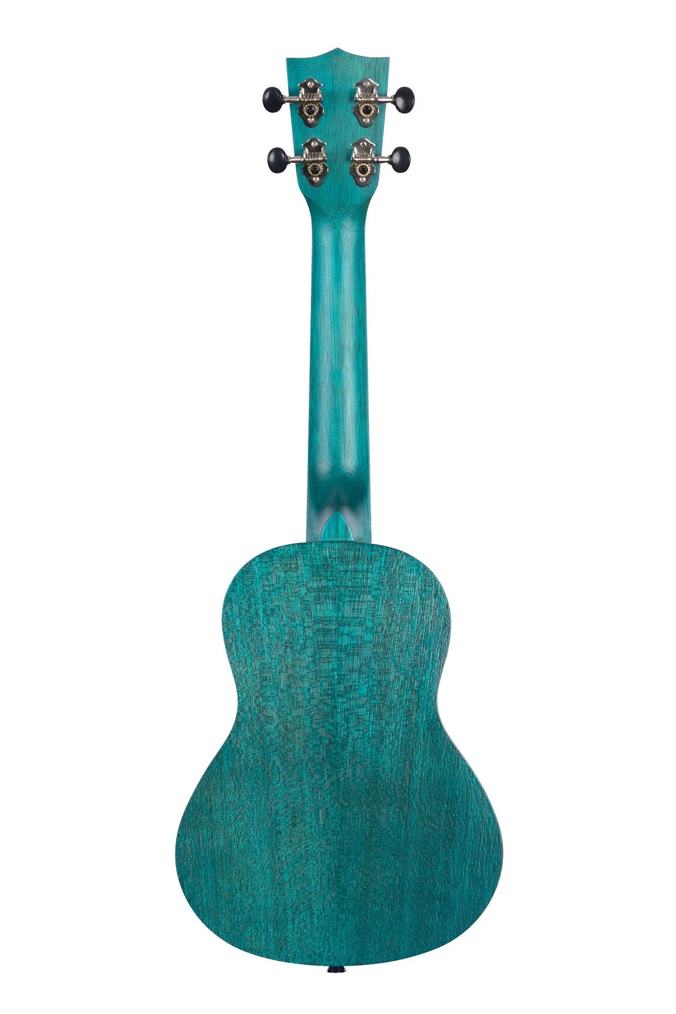 Our Modern Meranti Ukuleles in Watercolor are awash in rich hues. The semi-transparent stain allows the Meranti wood grain to show through, highlighting the best of both worlds—striking color plus a beautiful wood texture. Meranti is a durable wood which makes it a great choice as an entry-level instrument. Each Modern Meranti offers you a place to unleash your creativity, show off your personality, experiment and learn new things—AND add a pop of color to your ukulele collection for a great price! Offered in four brilliant watercolor stains—Fern Green, Adobe Red, Ocean Blue, and Royal Purple. Available in Soprano and Concert. MEASUREMENTS Scale Length: 15 inches, Overall Instrument Length: 24 inches, Body Length: 11 inches, Number of Frets: 18, Width at Upper Bout: 6 inches, Width at Lower Bout: 8.25 inches, Width at Waist: 5.25 inches, Body Depth: 2.625 inches, Fingerboard Width at Nut: 1.375 inches, Fingerboard width at neck/body joint: 1.75 inches.
