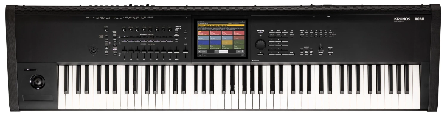 The KRONOS sets the standard for music workstations, featuring nine sound engines, intuitive controls, and advanced performance features. Now featuring an improved touchscreen, faster boot time, and a refined aesthetic design, the KRONOS delivers unmatched sound versatility, from pristine acoustic pianos to dynamic synthesizer tones, for every stage and studio.