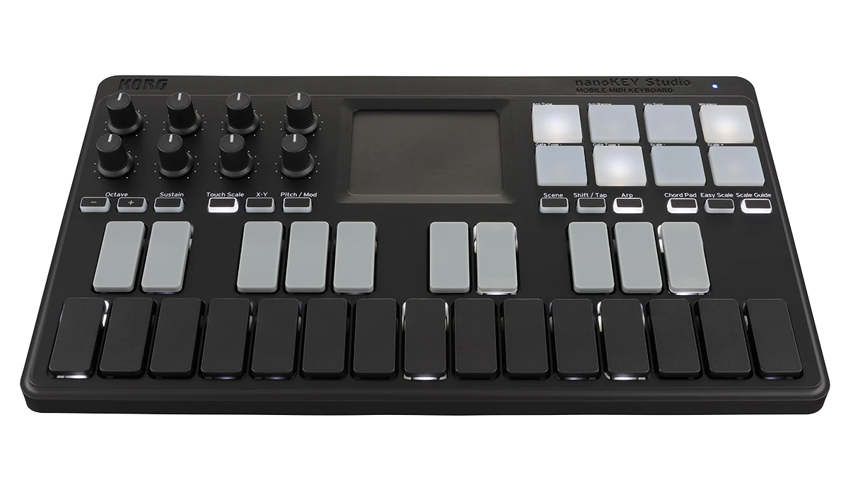 The nanoKEY Studio provides a keyboard, knobs, trigger pads, and touch pad that lets you instantly convert your inspiration into sound. It is battery operated and can connect wirelessly to iPhone/iPad or Mac/Windows. It’s a compact, mobile MIDI keyboard that is easy to travel with, allowing ease of use anytime, anywhere.