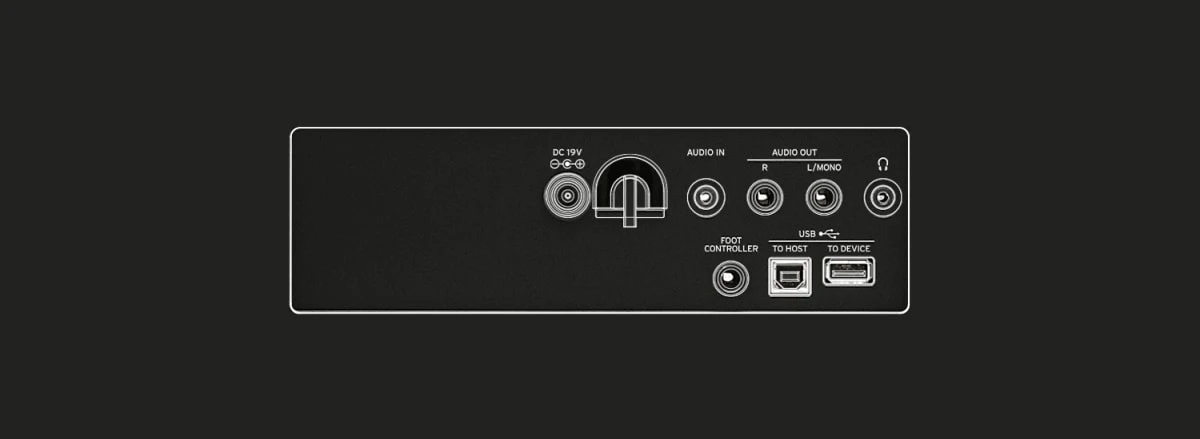 - Foot controller jack 6.3 mm (1/4″) phone jack