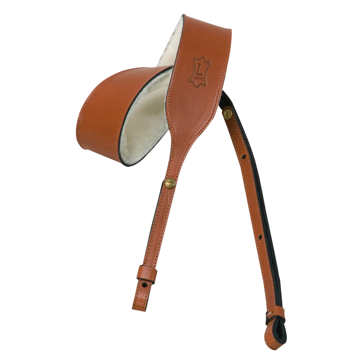 - Levy’s 2″ wide walnut veg-tan leather banjo strap.