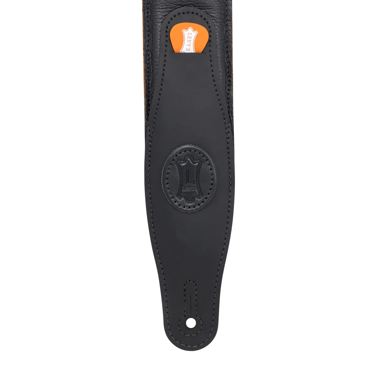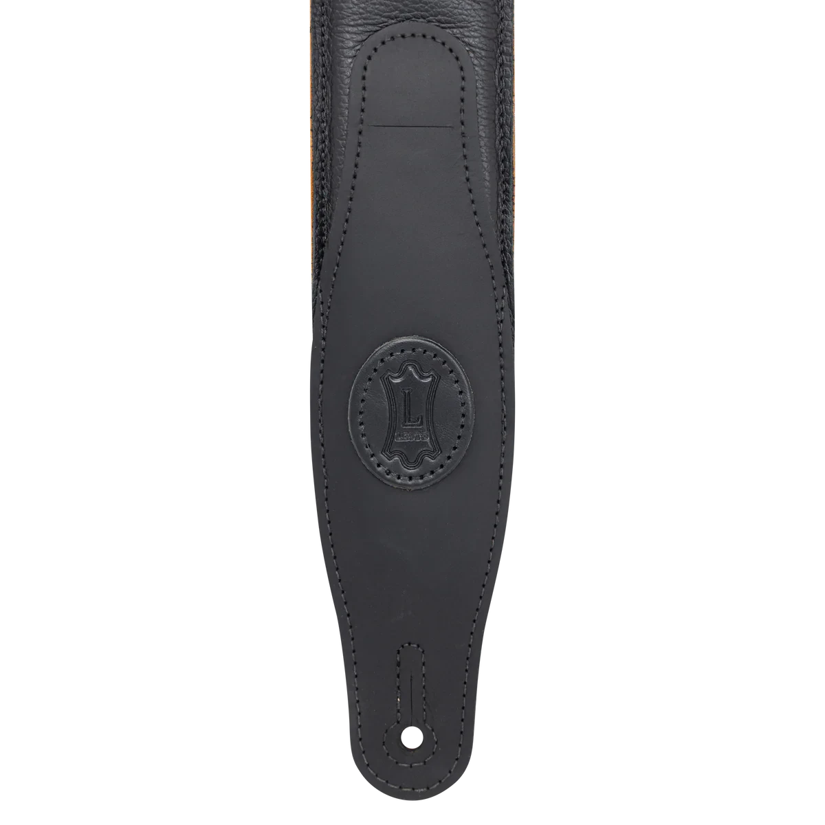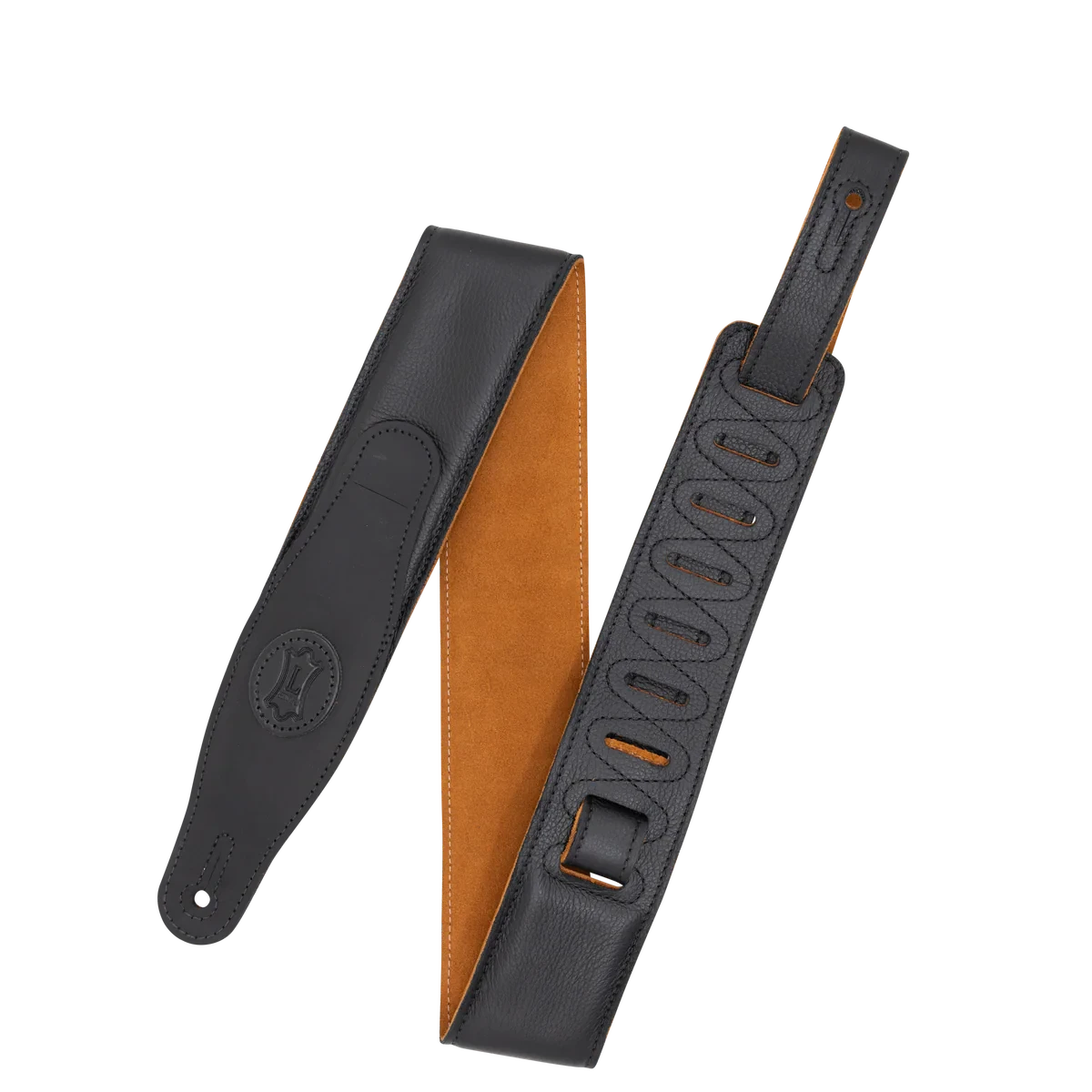 - 2.5″ Black Padded Garment Leather Guitar Strap with Honey Suede Backing