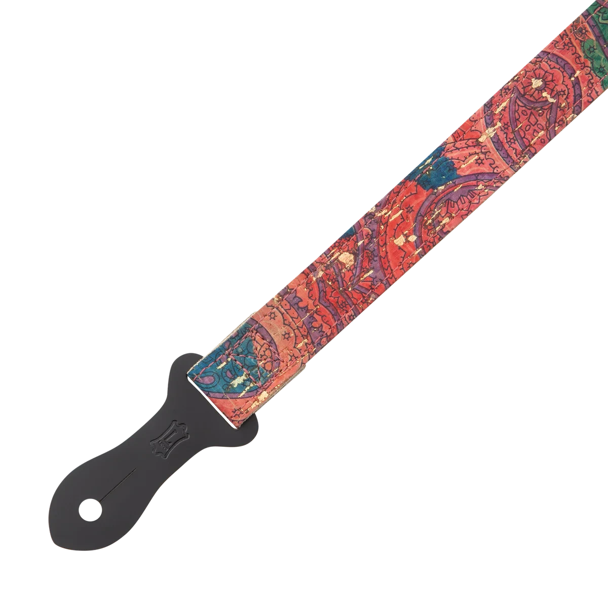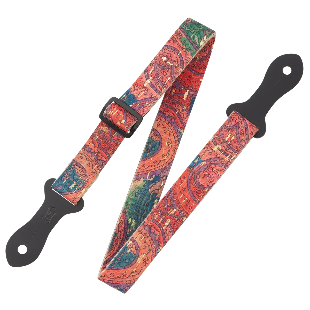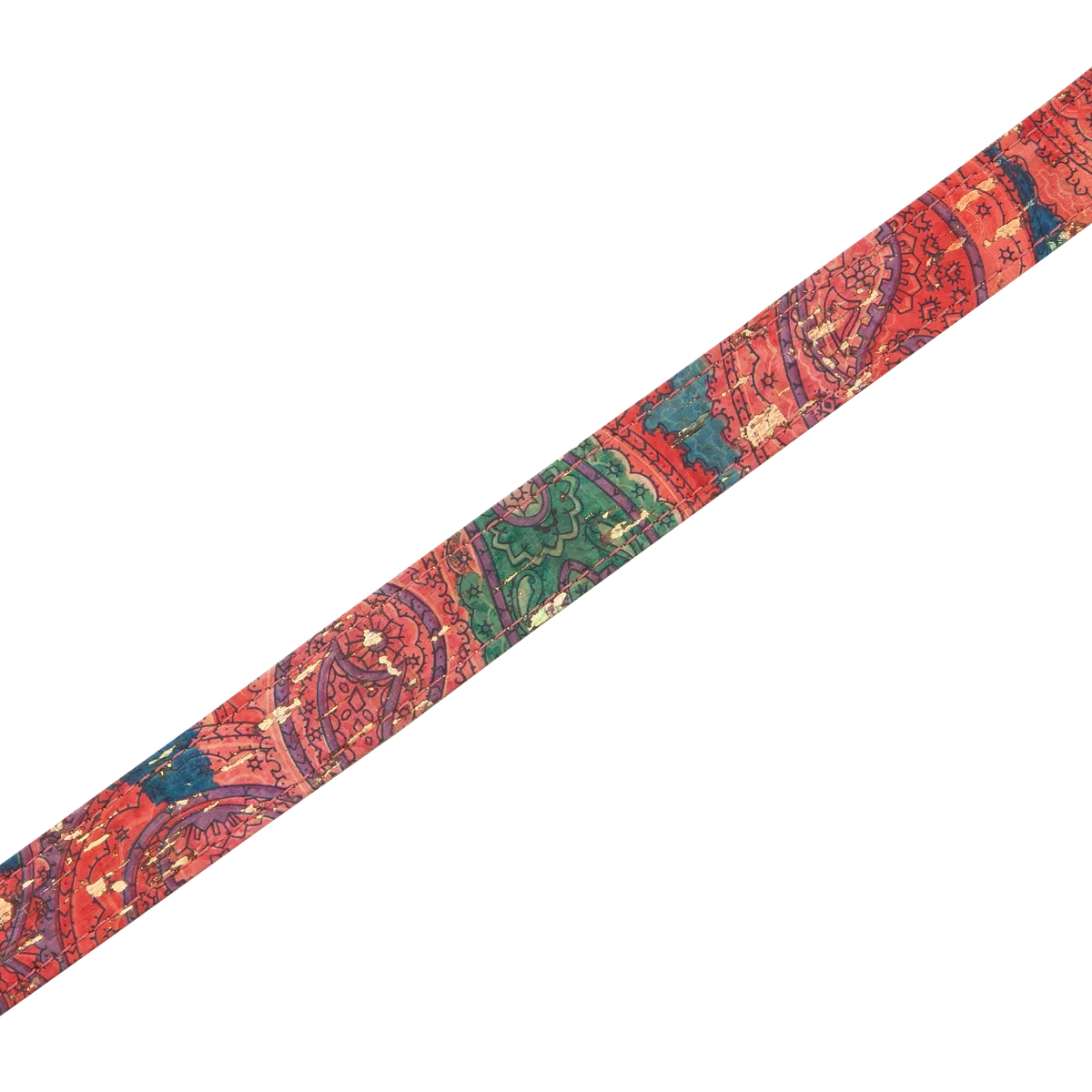 - Two-ply natural cork multi-use strap with chrome tan leather ends. Black plastic loop and slide hardware. Adjustable from 29 to 49″.