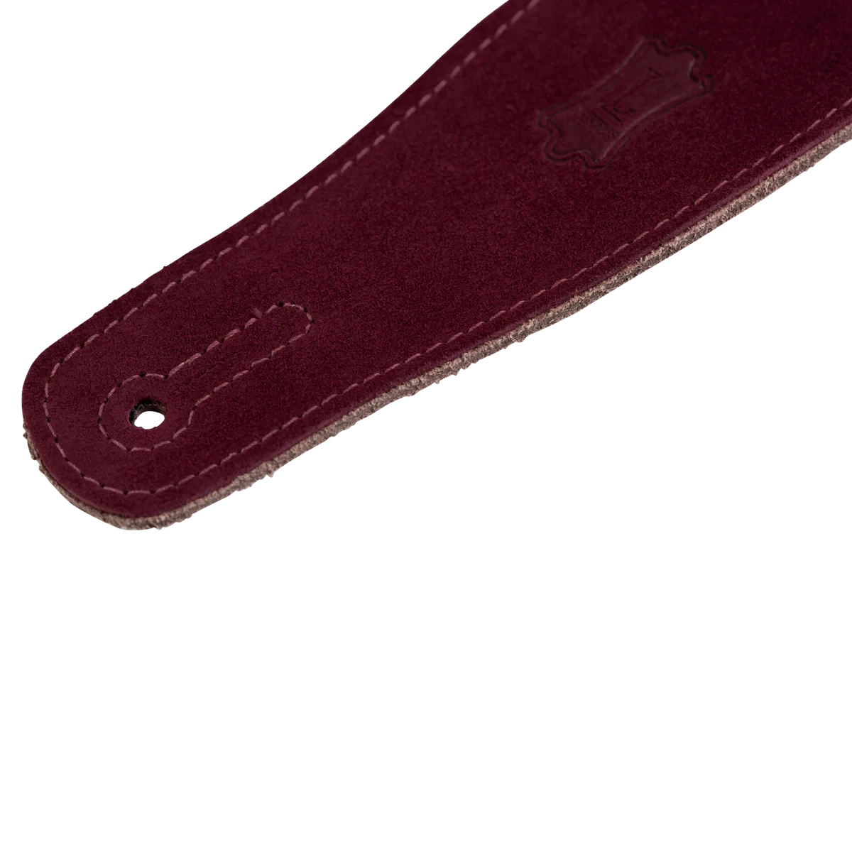 - Levy’s 2 1/2″ Wide Suede Guitar Strap In Burgundy.